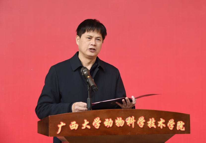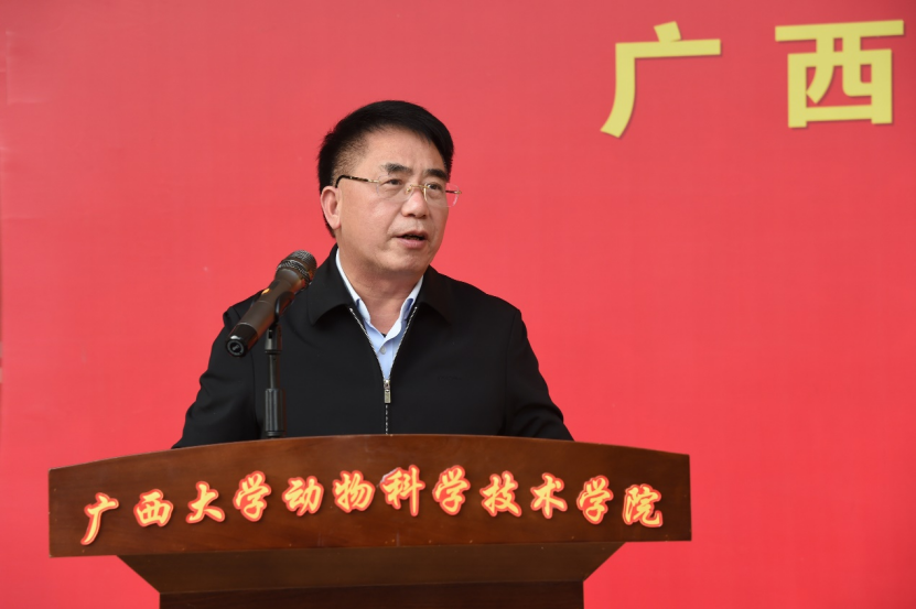 梁纪豪副厅长代表农业农村厅对广西畜禽繁育与疾病防控重点实验室、广西壮族自治区兽用生物制品工程研究中心的揭牌成立表示热烈祝贺。梁副厅长引用了习近平总书记在中央农村工作会议的讲话精神,指出“全面推进乡村振兴、加快建设农业强国,是党中央着眼全面建成社会主义现代化强国作出的战略部署。我们要加快建设农业强国,要紧盯世界农业科技前沿,大力提升我国农业科技水平,加快实现高水平农业科技自立自强,要以农业关键核心技术攻关为引领,以产业急需为导向,发挥新型举国体制优势,整合各级各类优势科研资源,强化企业科技创新主体地位,构建梯次分明、分工协作、适度竞争的农业科技创新体系。要打造国家农业科技战略力量,支持农业领域重大创新平台建设”。广西的生猪、家禽生产规模位于全国前列,饲料产量也连续3年位居全国第三。太阳成集团122ccvip拥有一流的人才培养体系,师资力量雄厚。广西畜禽繁育与疾病防控重点实验室和广西壮族自治区兽用生物制品工程研究中心的成立,必将在推动广西畜牧业快速、高质量发展中发挥更大作用。