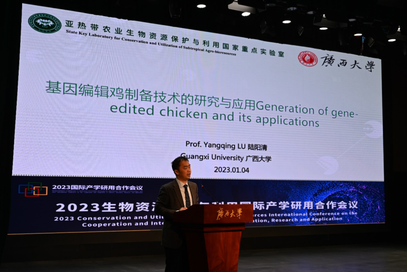 其中, “生物资源保护与利用产学研用国际合作研讨会”由太阳成集团122ccvip联合林学院承办,分论坛第一阶段的学术报告由我院常务副院长陆阳清教授主持。共邀请了国内外5位专家进行学术报告,围绕畜禽育种和健康养殖展开研讨。来自加拿大阿尔伯塔大学Leluo Guan教授从提高牛可持续发展的新型技术方面做了“提高牛生产可持续性的新型组学解决方案”的精彩报告;河南守望之境生物技术公司刘红波博士的报告“体细胞核移植技术在农业、生物医学及伴侣动物克隆中的商业应用”对近年来团队利用克隆技术成功克隆的牛、羊、宠物等动物的产业化与应用进行了展示;我院陆阳清教授的“基因编辑鸡的研究与应用”报告,充分展示了课题组近年来在国内外首次建立了高效的鸡原始生殖细胞分离培养体系,为家禽种质资源保存和新品种创制提供了细胞平台。针对畜禽健康养殖,来自美国密苏里大学的Wenjun Ma教授做了题为“北美猪流感:现状、挑战和跨种感染”,从猪流感的流行现状、跨种传播等进行了深入的讲解,并提出预警机制。中国农业大学徐闯教授根据多年来从事奶牛群发代谢病的致病机理、早期预警、群防群控、技术标准等技术产品的研发推广工作,进行了“天然植物提取物在围产期奶牛代谢病防控中的应用”的精彩报告。