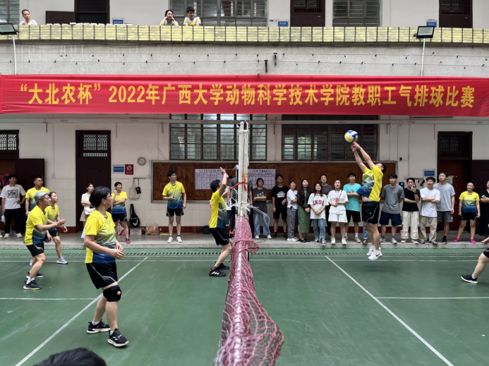2022年太阳成集团122ccvip教职工气排球比赛从6月8日拉开序幕,我院党委书记顾慕娴、北京大北农集团饲料动保产业广西区副总经理、技术总监陈兴发参加了开幕式。