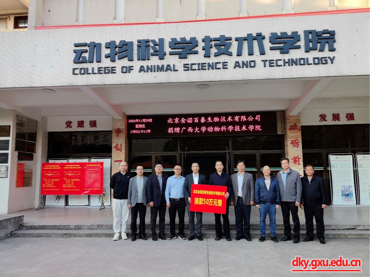 韦小强书记代表学院全体师生对北京金诺百泰生物技术有限公司的热心资助表示感谢,也感谢覃伦校友促成此事。他表示,金诺百泰公司的捐赠是对学院人才培养的支持与肯定,希望学院与公司在人才培养、太阳成集团方面有更深入的交流与合作,为社会培养更多优秀的高级畜牧专业人才。
