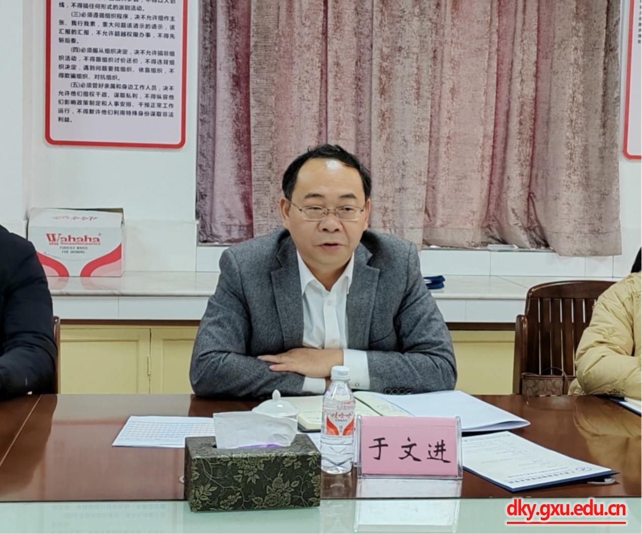 于副校长对学院工作予以充分肯定。他强调,2025年是“十四五”收官之年,也是“十五五”规划之年。学院领导班子要聚焦学院发展短板,进一步做好学院发展的长远谋划;要加强学院人才培养体系建设,加快高层次人才引进和培育;要发挥学院产学研优势,主动加强与广西畜牧产业的对接与合作;要自我加压,积极组织学院教师谋划、申报国家级项目、奖项;要加快推进农林动大楼建设、P3实验室申报、动物医院运营建设等工作。