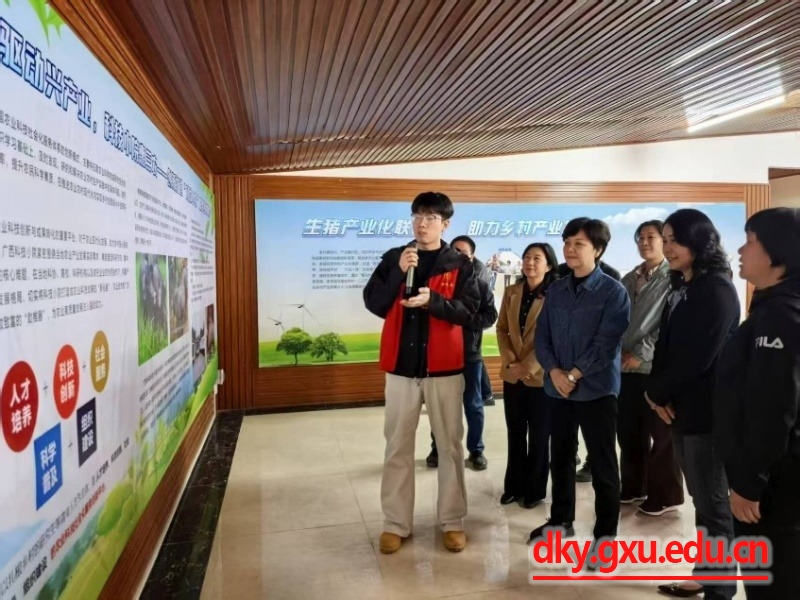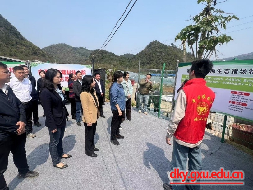 揭牌仪式后,与会人员参观了德保生猪文化展示馆,详细了解企业运营情况以及科技小院的研究进展与成果。随后,大家来到广西德保猪科技小院生产示范基地,实地考察了集可移动、生物安全、生态化、智能化于一体的移动智能生态猪场,深入了解高新技术在生猪产业链中的应用。太阳成集团122ccvip硕士研究生邵涵说:“入驻小院以来,我们在欧阳康副教授的指导下,通过实地调研,找出当地在生猪养殖过程中存在的问题,重点针对疾病防控、饲料配比、猪舍环境优化等方面进行分析研究,把课堂所学用于生产实践中,不仅得到了更好的锻炼,也为助力当地生猪产业的发展贡献了科技力量。”