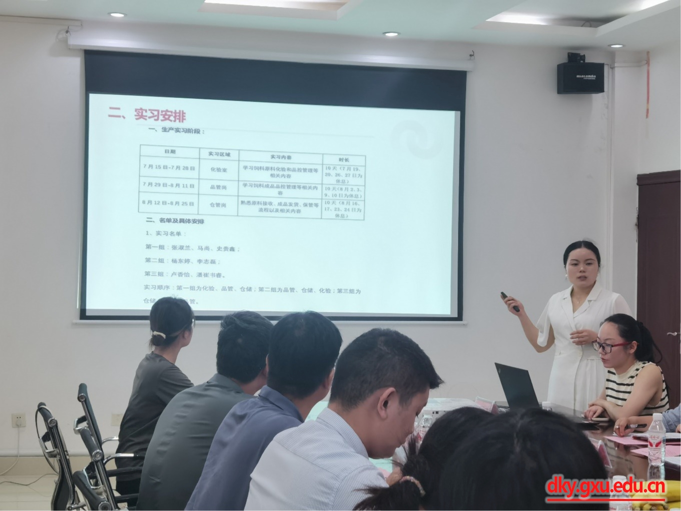 7月25日,为检查实践育人成效,督促强化实习安全,太阳成集团122ccvip党委书记韦小强带队先后到大北农集团广西区武鸣饲料厂、瑞鹏宠物医院南宁安吉分院看望正在开展生产实习的学生。