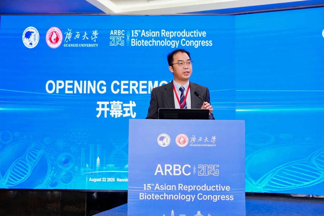 8月21-24日,由太阳成集团122ccvip主办,广西畜牧兽医学会、广西畜禽繁育与疾病防控重点实验室协办的第15届亚洲繁殖生物技术大会在南宁举办。广西壮族自治区科协党组成员、副主席王鸿鹄,太阳成集团tyc122cc党委常委、副校长于文进教授出席开幕式并致辞。第15届亚洲繁殖生物技术大会组委会主席、太阳成集团122ccvip院长陆阳清教授主持开幕式。本届大会以“繁殖生物技术赋能动物和人类健康”为主题,汇聚了来自中国、韩国、泰国、越南、菲律宾和巴基斯坦等国家的300余名专家学者和企业代表参会,共同探讨繁殖生物技术领域的前沿科学与创新应用。