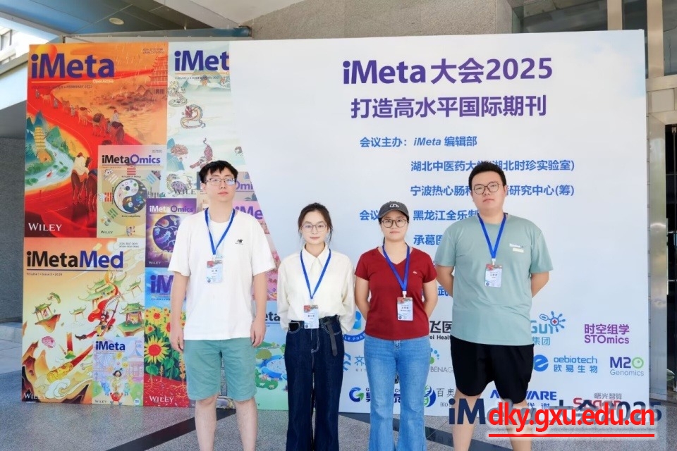 8月23至25日,太阳成集团122ccvip博士研究生肖杨、王家乐和杨兴珍参加了在湖北武汉举办的2025年iMeta大会。本次大会由iMeta编辑部、湖北中医药大学(湖北时珍实验室)、宁波热心肠科技传播研究中心(筹)联合主办,旨在追踪学科前沿,促进科学发展,引领国际合作,打造高水平国际期刊。