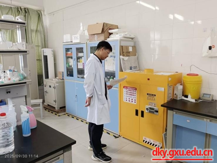 检查过程中,韦小强书记一行深入实验室,对危化品存储使用规范、仪器设备维护保养情况进行细致核查。针对排查发现的安全隐患,当场提出整改要求,明确责成实验室负责人立即落实整改,确保隐患清零。韦小强书记强调,各实验室要严格执行安全操作规程,细化假期值班值守安排,坚决杜绝安全事故发生。