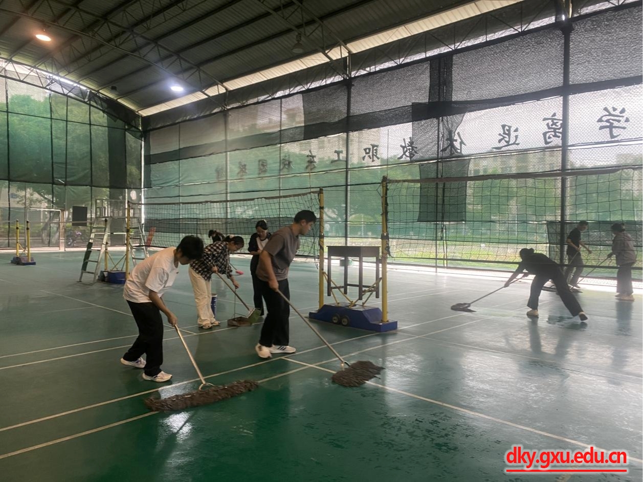活动当天,学生党员们准时在球馆门口集结。支部负责人明确分工安排后,党员们迅速投入劳动,认真整理运动器材,细致擦拭座椅积尘,彻底打扫地面环境,不放过任何卫生死角。活动中,大家相互配合、干劲十足,经过一个多小时的辛勤付出,球馆整体环境焕然一新。球馆负责人对学生党员们的志愿服务表示感谢,肯定了党员同志们不怕脏、不怕累、甘于奉献的优良作风。