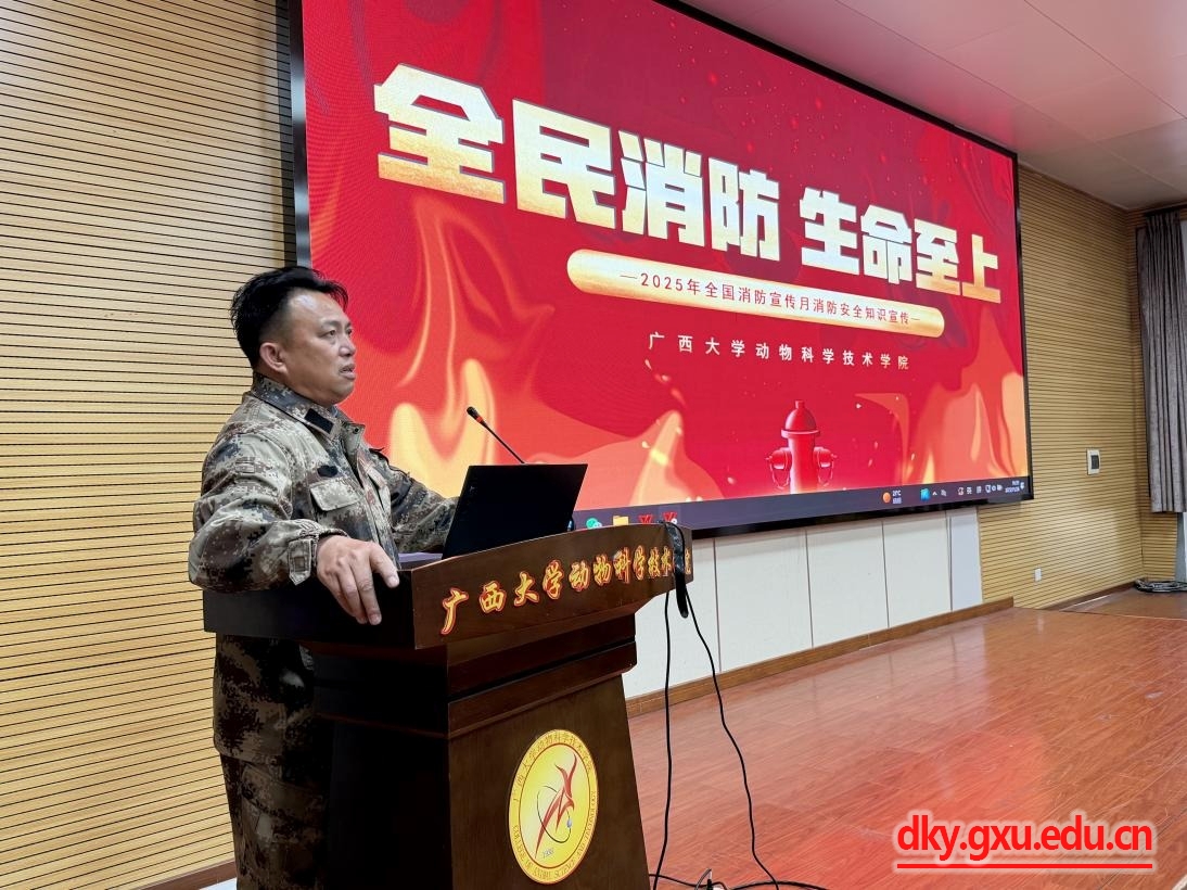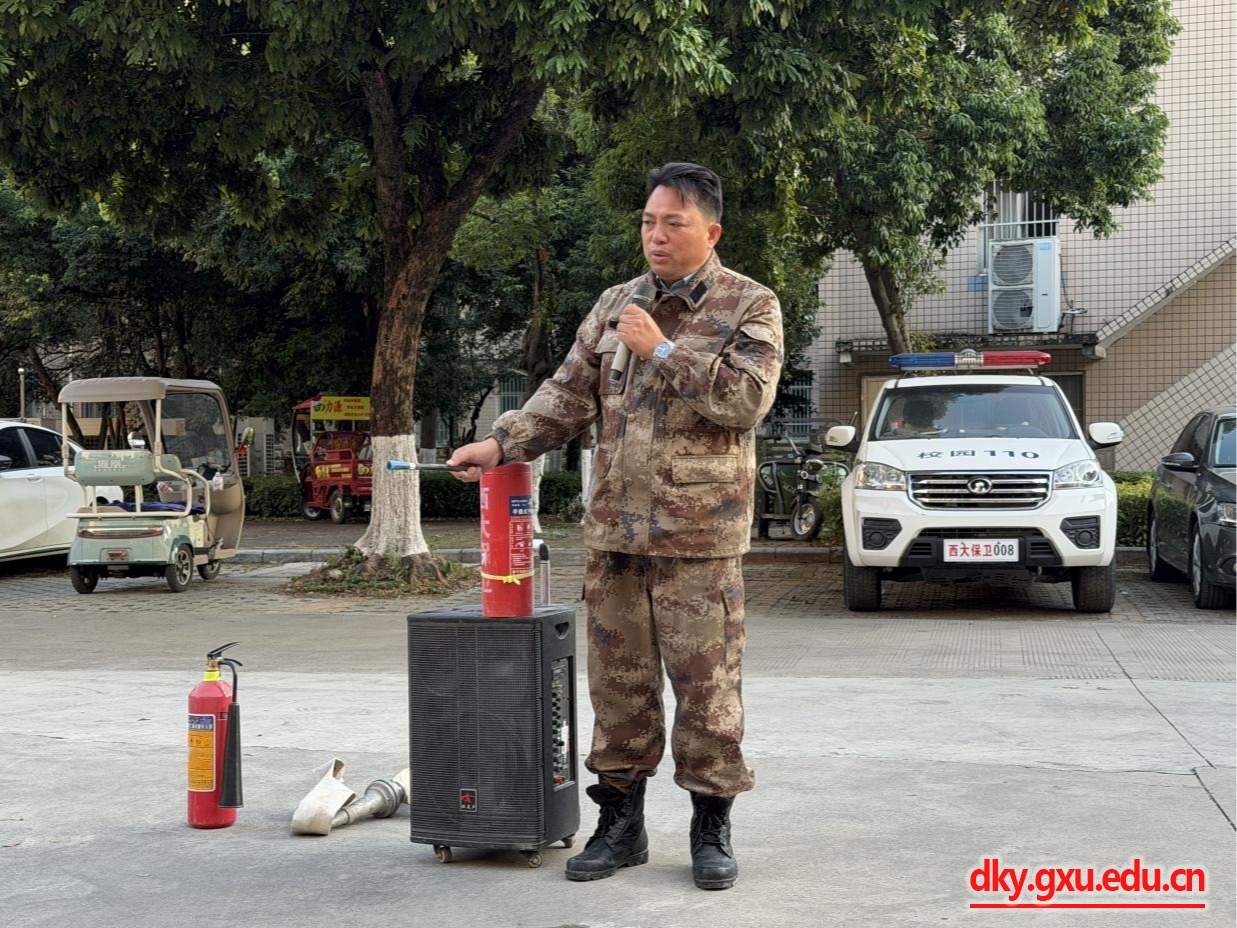 学院邀请保卫处黄光电同志结合实际案例,向同学们分析了校园火灾形成的原因和特点,并讲解了灭火器和消防水带等不同消防器材的使用方法和注意事项。