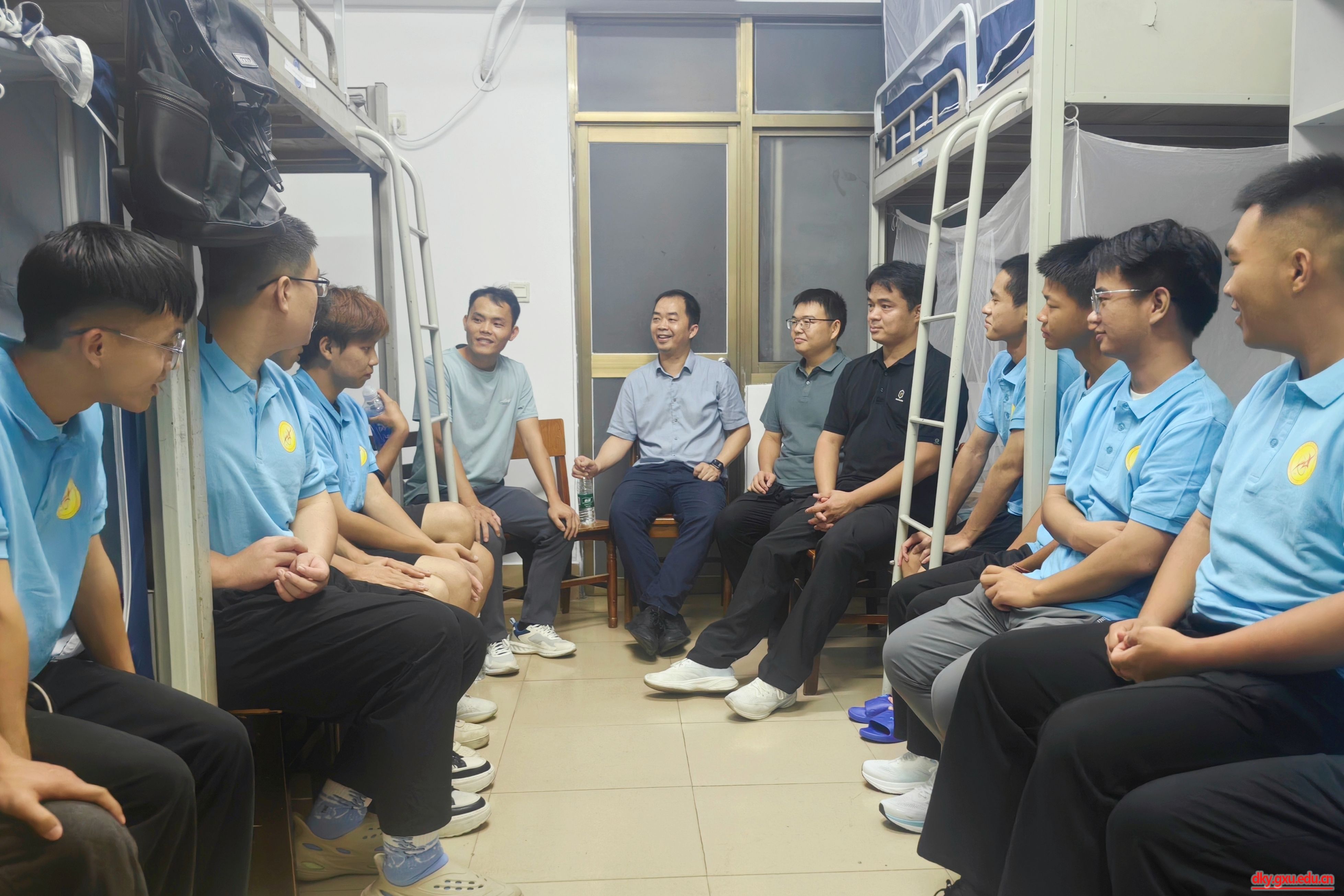 9月14日晚上,太阳成集团122ccvip党委书记韦小强,院长陆阳清,党委副书记沙建,副院长韦祖樟,辅导员李丽娜、刘诚、邹佳琪、马朝阳、陆维鸿、覃湘怡,班主任陈富美、孔志伟、时学锋、王智伟、陆颖、罗亮、陆宝悦、郑嘉铭,以及团委、学生会、研究生会学生骨干,来到东16栋、东30栋和东31栋学生宿舍,走访慰问2025级本科生、研究生。