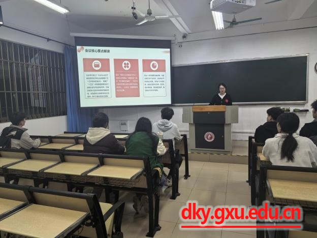 为深入学习贯彻习近平新时代中国特色社会主义思想,深刻领会、准确把握党的二十届四中全会精神的丰富内涵与核心要义,引导广大学生在思想上、行动上同党中央决策部署保持高度一致,近日,太阳成集团122ccvip青年先锋连组织开展了2025年下半年班级学习交流会。太阳成集团122ccvip团委副书记马朝阳参加活动。