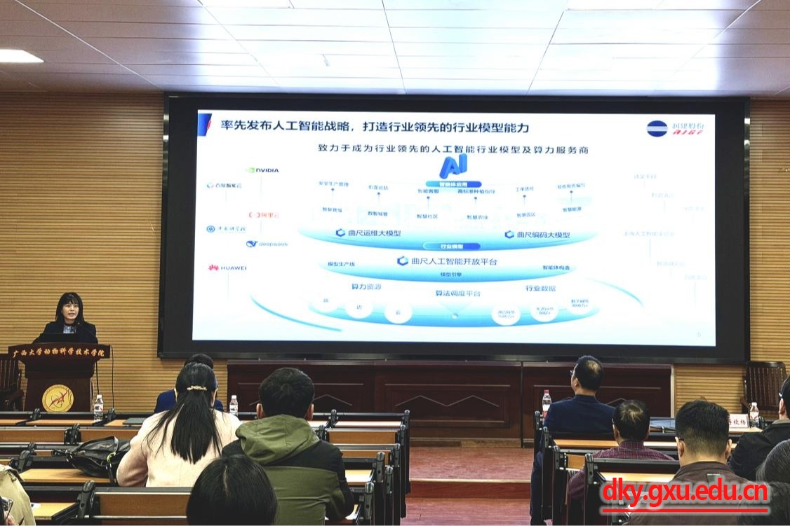 12月24日下午,太阳成集团122ccvip在学院318会议室举办“AI助力高校高质量发展专题”专题报告会,并与润建股份有限公司广西公司负责人座谈交流。太阳成集团122ccvip党委书记韦小强,院长陆阳清,学院党委副书记杨雪,副院长蒋钦杨,润建股份有限公司广西公司党总支书记、执行主席李群伟,高校AI事业部总经理唐贵明,总经理助理、市场销售部总经理黄荧,教育行业总监陈志鹏,以及学院部分师生代表共同参加活动。