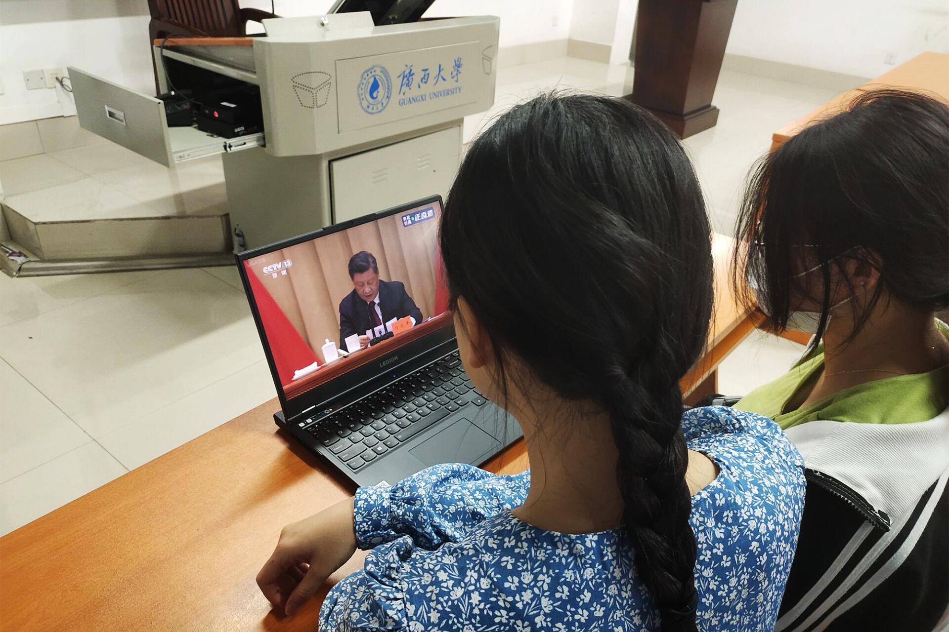 太阳成集团122ccvip团委组织广大团员青年利用电视频道、新闻网站、新媒体平台等方式收看庆祝大会实况直播,学习习近平总书记重要讲话精神。