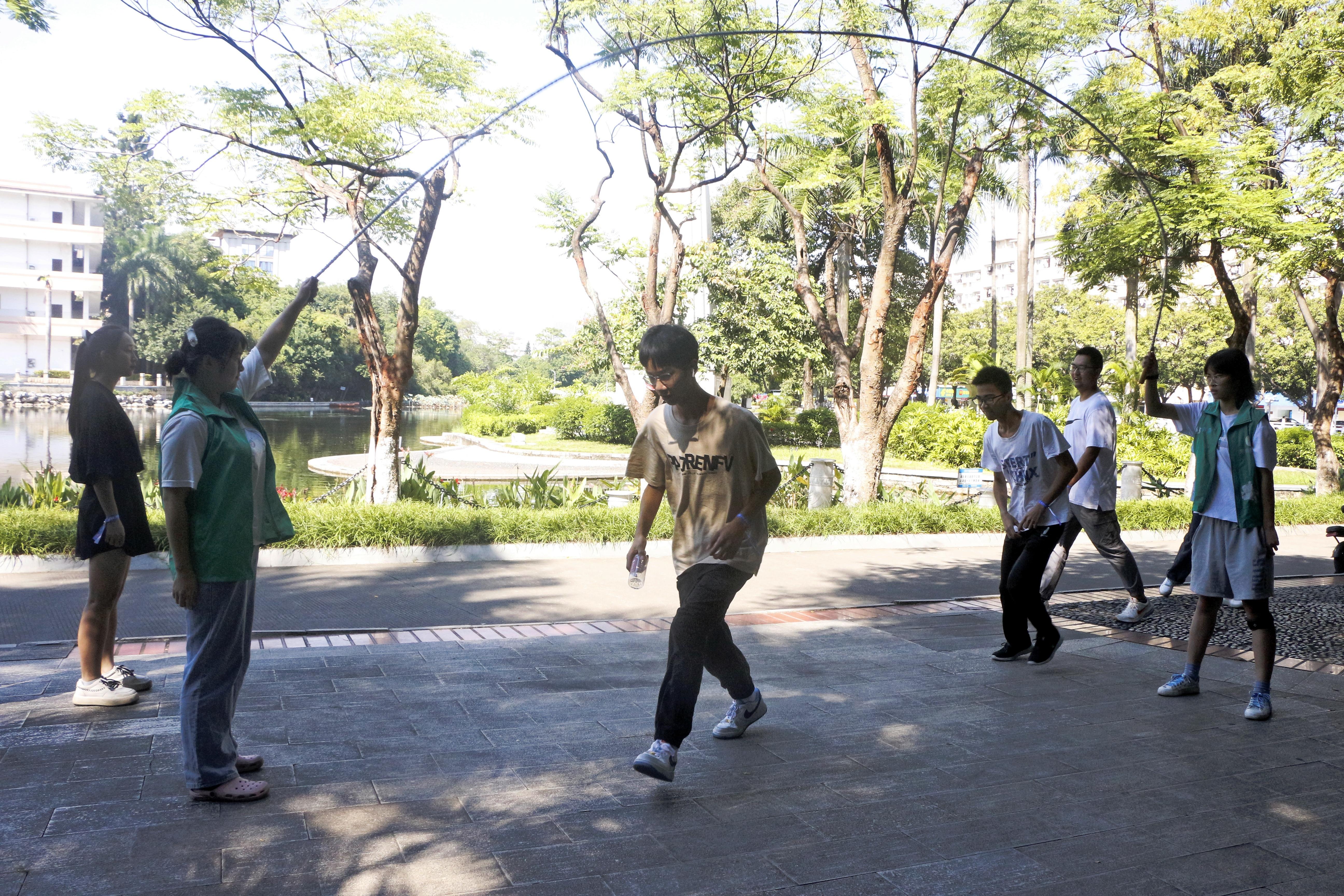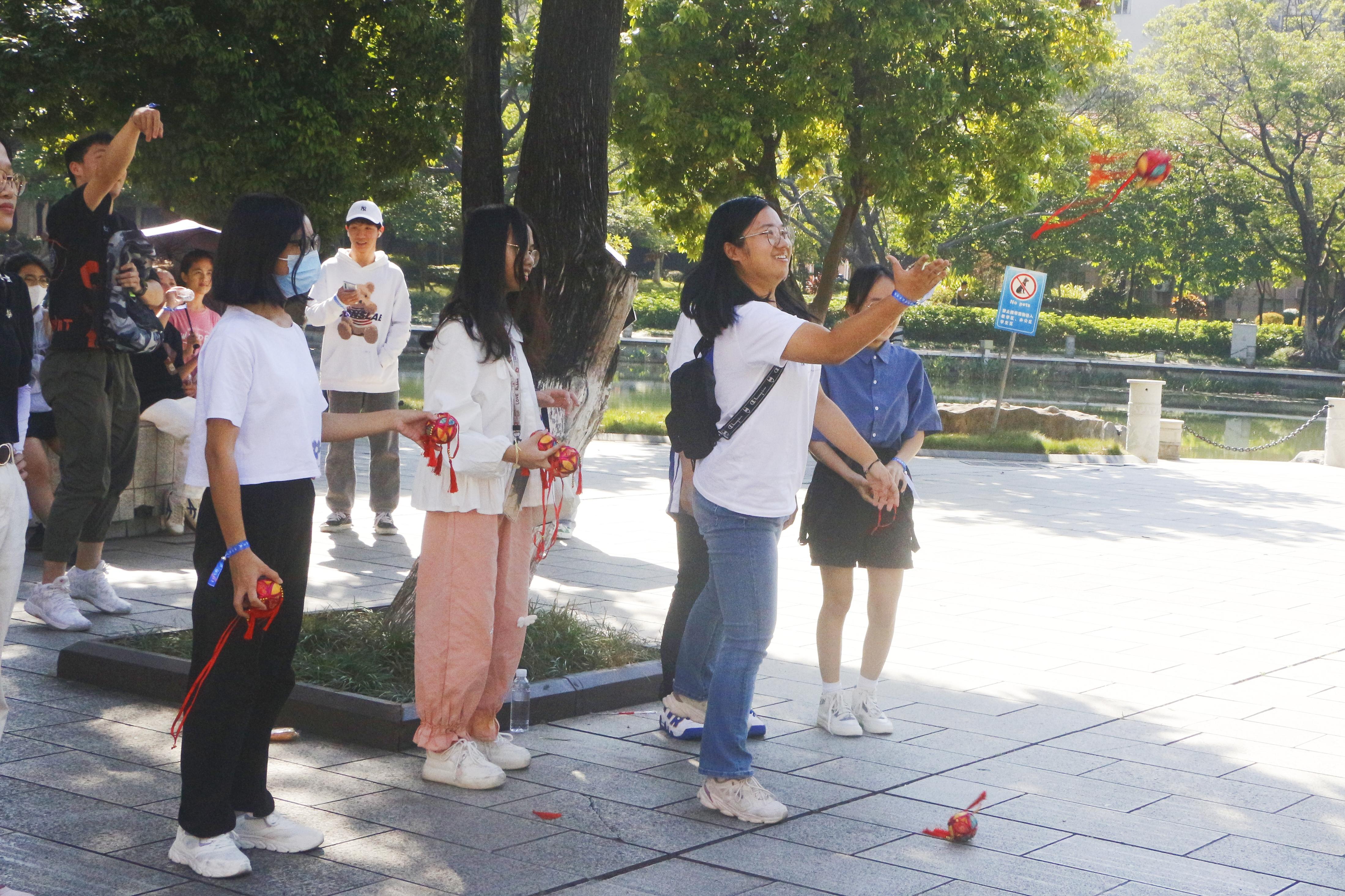 本次活动以游戏为载体,以运动为依托,分别在育才广场、大礼堂、汇学堂、图书馆、大学生活动中心、学生军纪念碑等校园标志性区域设置了6个游戏站点。太阳成集团122ccvip2022级本科生全员参与,随机分为20组,通过不同路径前往游戏站点,进行了“你的名字”、背篓接绣球、胯下传球、两人三足、夹乒乓球、接力长绳等寓教于乐的团队训练项目,使得大家既在轻松有趣的氛围里,以游戏的形式增进了彼此间了解和信任,又在充满挑战的环境中,以团队的方式感受到集体的力量和智慧。