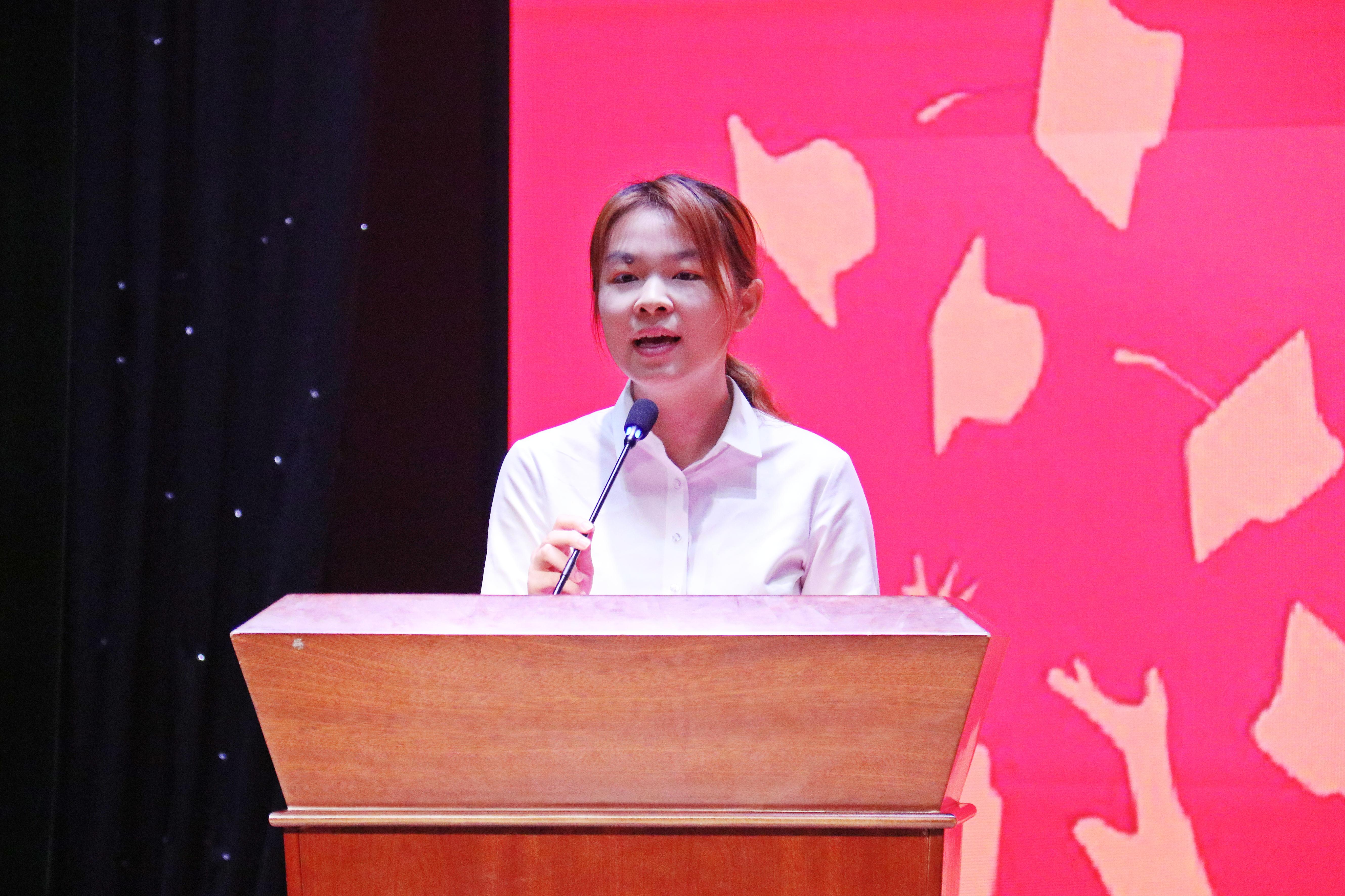 顾慕娴老师代表学院向圆满完成学业的同学们表示热烈祝贺,向悉心栽培呵护其成长的老师们、家长们致以崇高敬意,并深情寄语2022届全体毕业生,希望大家珍惜时代机遇、担负时代使命,志存高远、砥砺奋斗,以“强国有我”的信念逐梦未来,以当代青年的最好成绩回馈人民。
