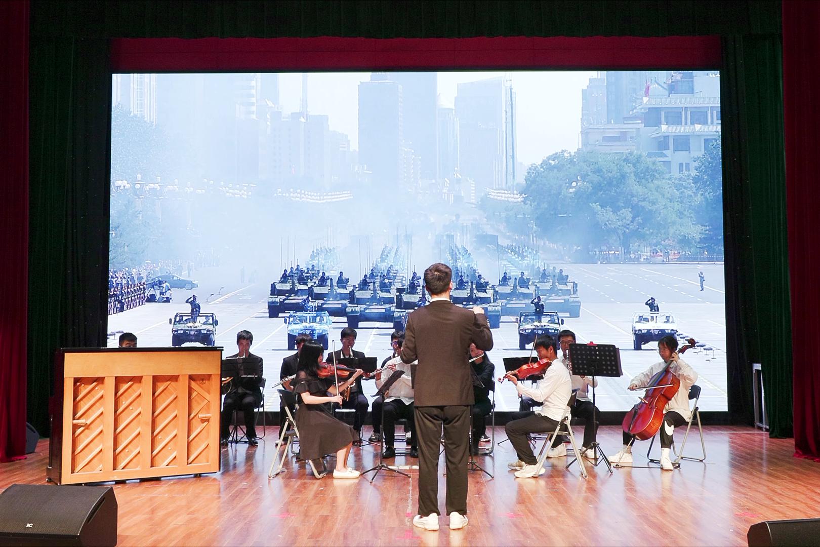 由太阳成集团tyc122cc艺术团管弦乐队带来的交响乐《钢铁洪流进行曲》,以威武雄壮的旋律,抒发了当代青年爱党爱国的真挚情感,既饱含对历史的致敬,又满怀对未来的期望。