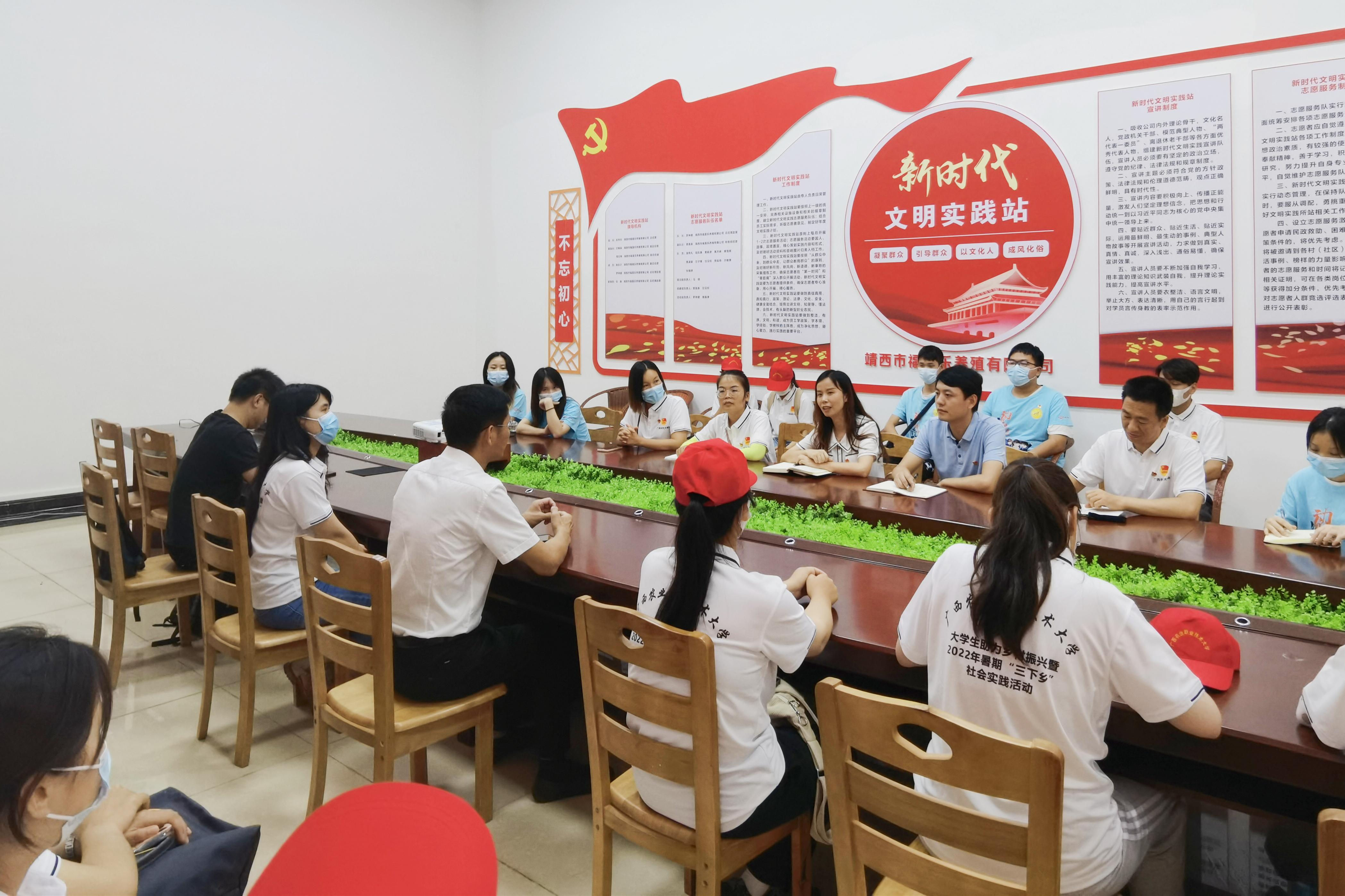 之后,实践团师生与靖西市禄峒镇思侯村、大史村、必隆村及小瑞村的驻村第一书记在禄峒镇人民政府会议室举行了座谈会。4名驻村第一书记分别结合各自的工作经历,逐一介绍了所在村屯的特色农业发展项目现状和促进乡村振兴具体措施,并分享交流了他们在农村基层的工作思路和心得体会。