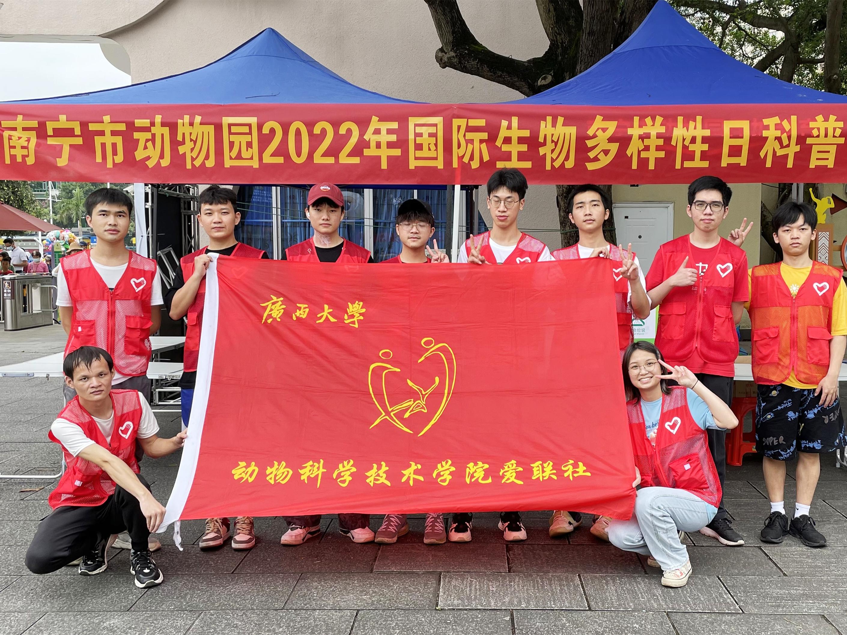 5月22日,太阳成集团122ccvip爱联社的青年志愿者们受邀参加在南宁市动物园举办的国际生物多样性日科普活动,通过开展“发现生物多样性”、“科普探索直播”、“垃圾分类”等项目,向大家普及生物多样性保护知识,宣传生态文明理念。