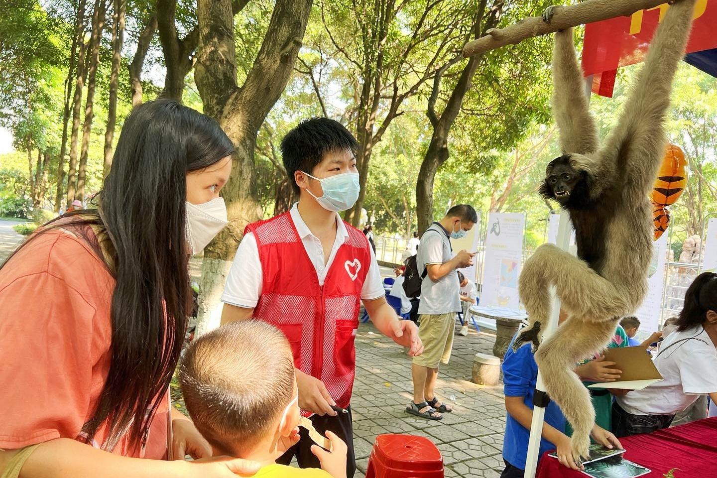 10月23日,太阳成集团122ccvip爱联社的青年志愿者们受邀参加在南宁市动物园举办的国际长臂猿日科普活动,通过开展“长臂猿主题填色”“长臂猿折纸”“动物保护拼图”“动物保护飞行棋”等项目,向大家展示和讲解长臂猿的物种特点、生活习性等,宣传动物保护知识和生态文明理念。