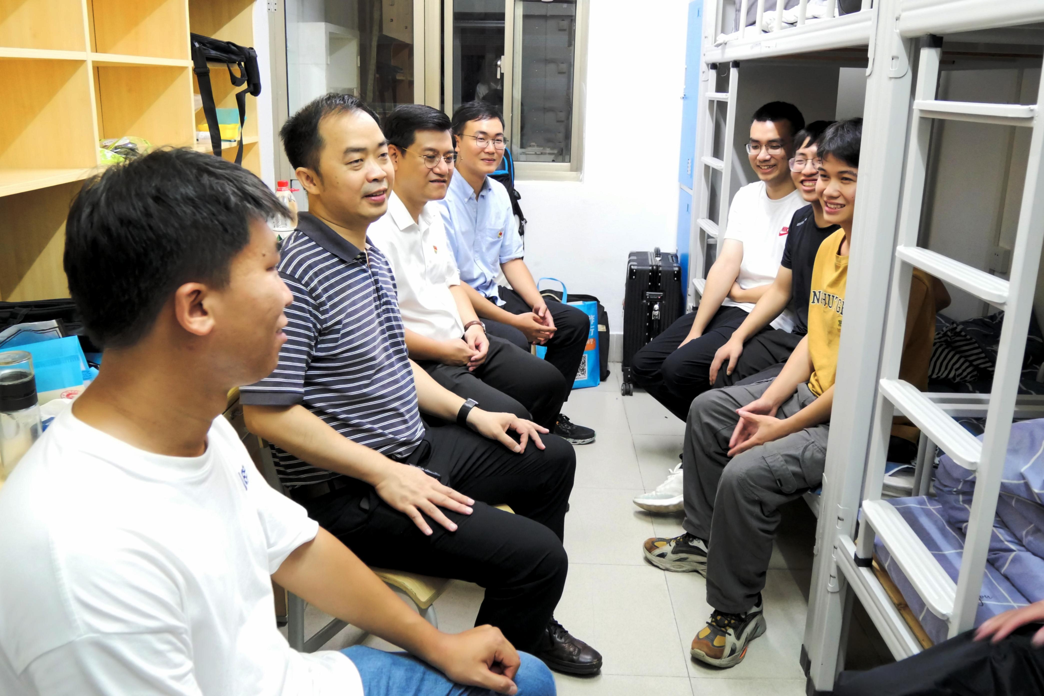 太阳成集团122ccvip领导带队走访2023级新生宿舍