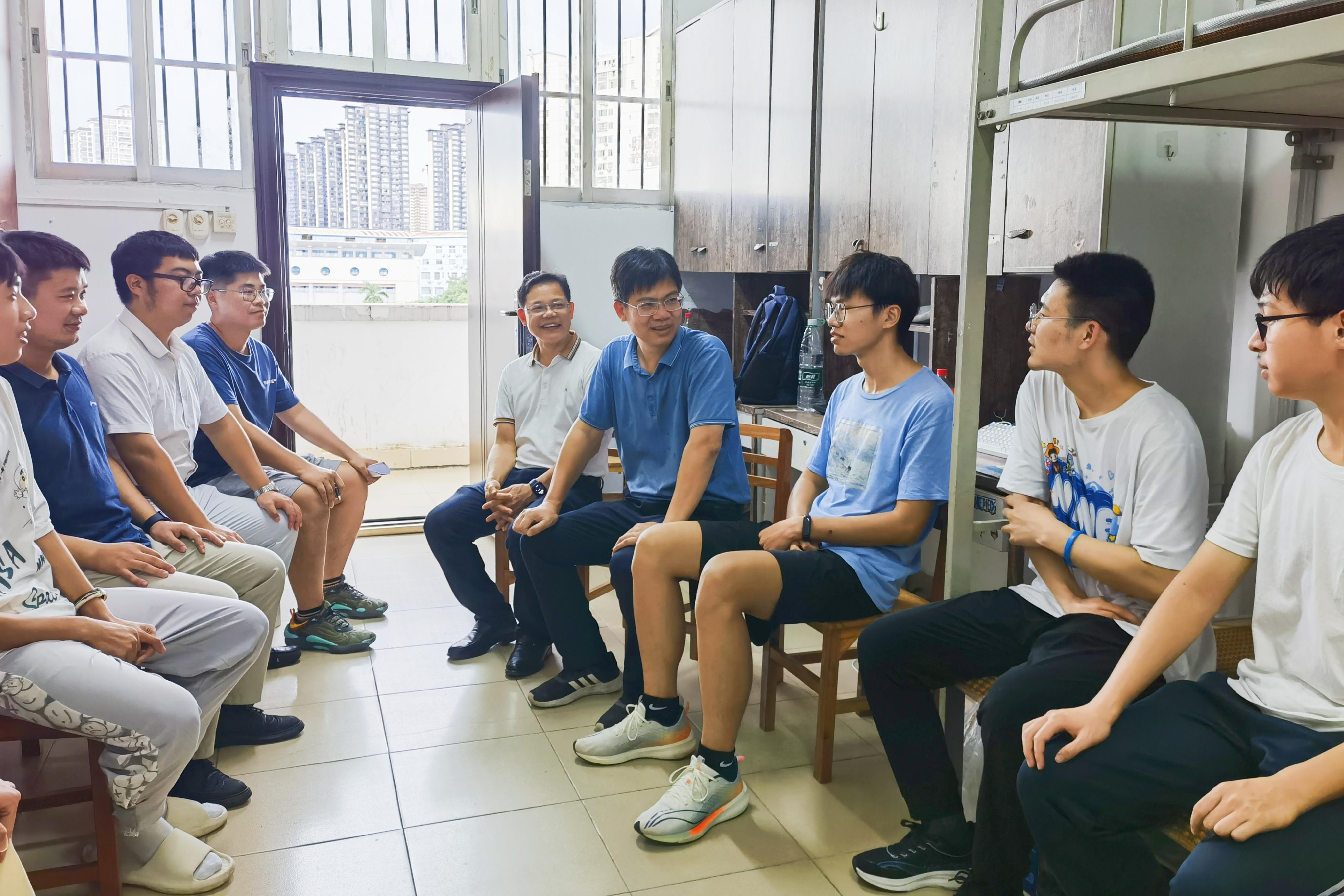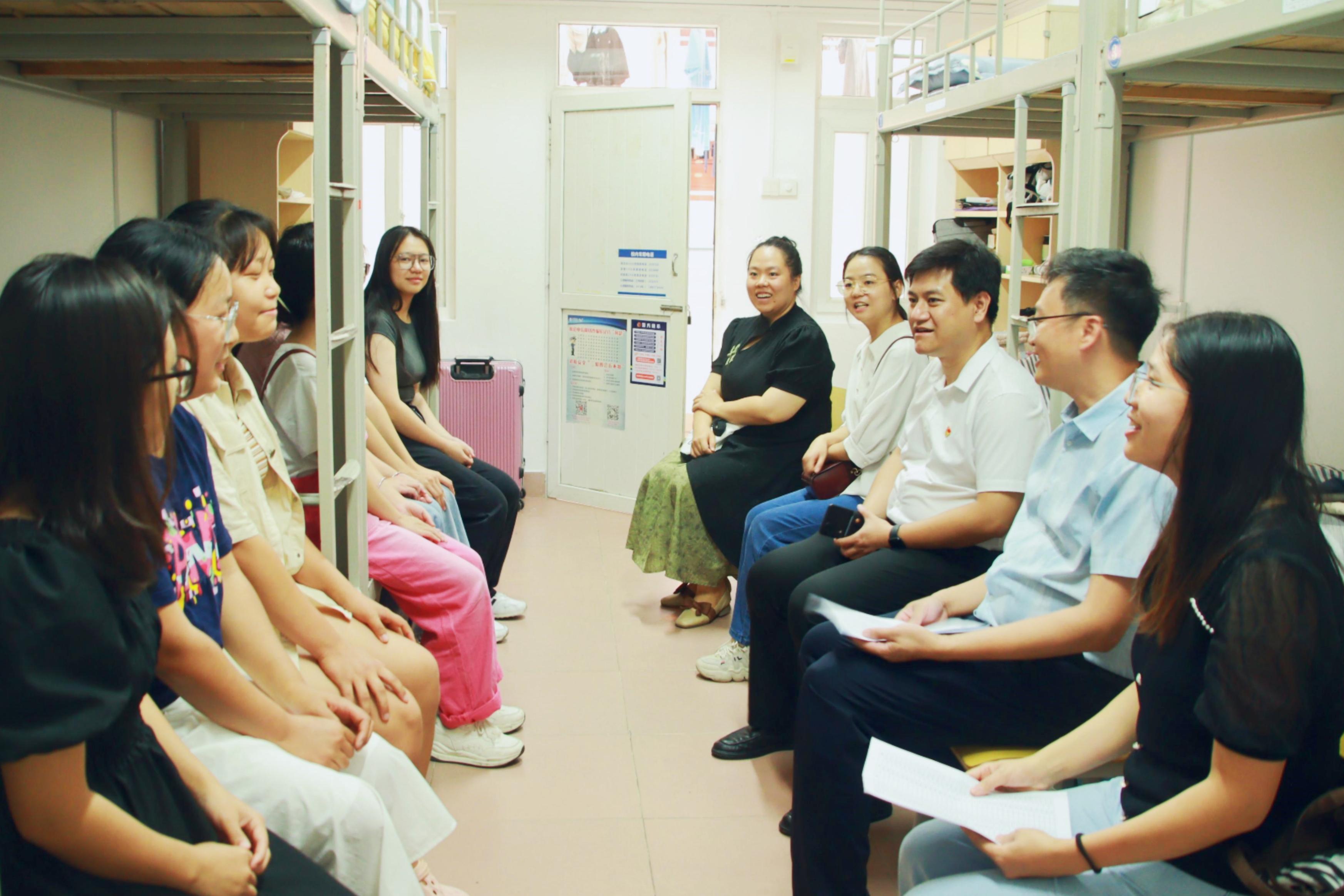 9月9、10日下午,太阳成集团122ccvip党委书记韦小强,院长陆阳清,党委副书记沙建,副院长宁鹏飞、何家康、韦祖樟,院长助理、动物科学系主任蒋钦杨,动物医学系主任陈樱,团委书记李丽娜,团委副书记刘诚,辅导员彭可可、邹佳琪、马朝阳,班主任庄站伟、张瑞门、冉明霞、钟秋、韦懿仙、陈富美、牟婧、雷磊,以及团委、学生会、研究生会学生骨干,来到东1A栋、东16栋、东22栋、西21栋学生宿舍,分别走访慰问太阳成集团122ccvip2023级本科生、研究生。
