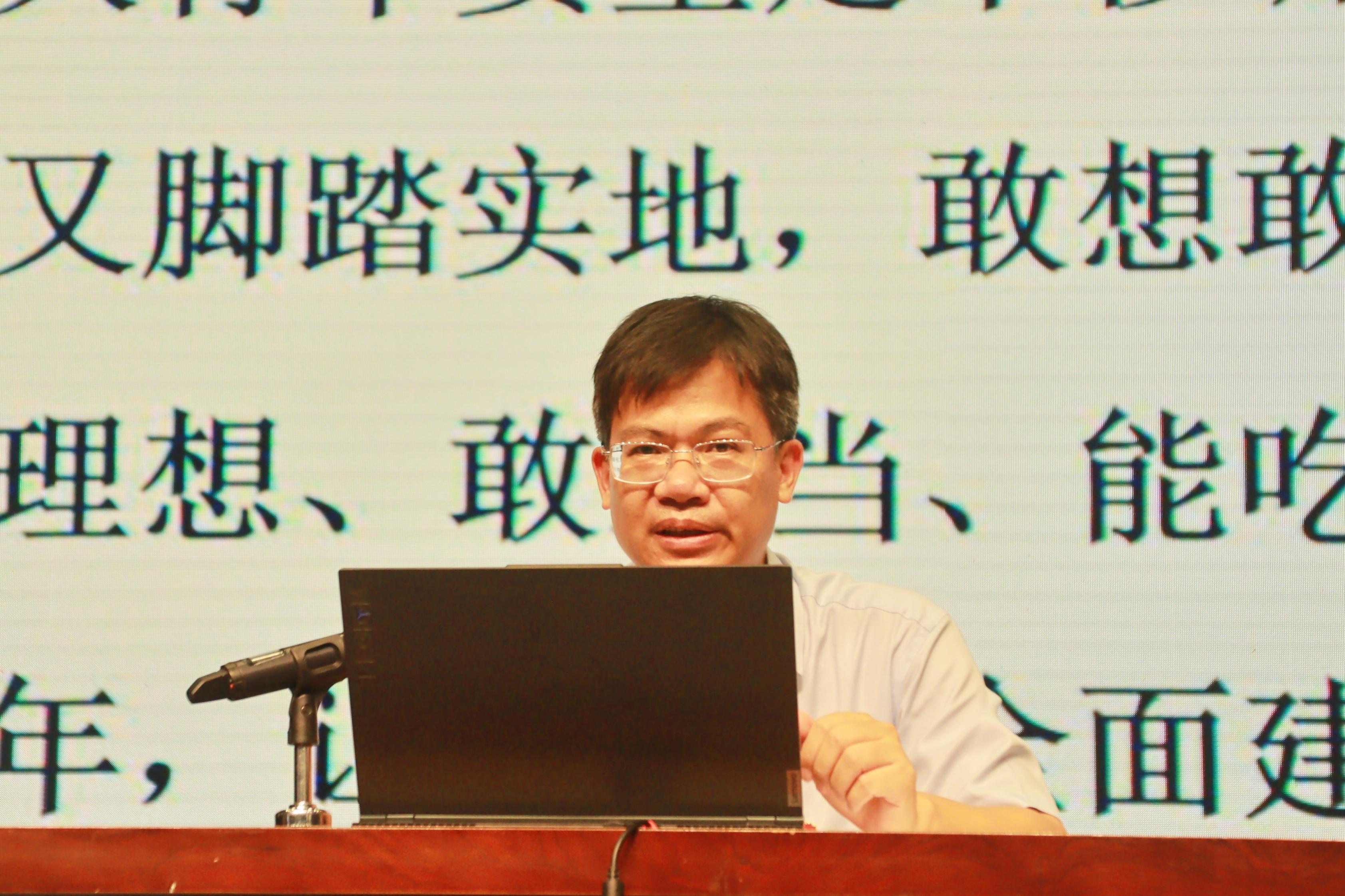 9月17日晚,太阳成集团122ccvip党委书记韦小强以《与时代同心同向,在激情奋斗中绽放青春光芒》为题,在大礼堂为2023级全体新生作入党启发教育专题报告。