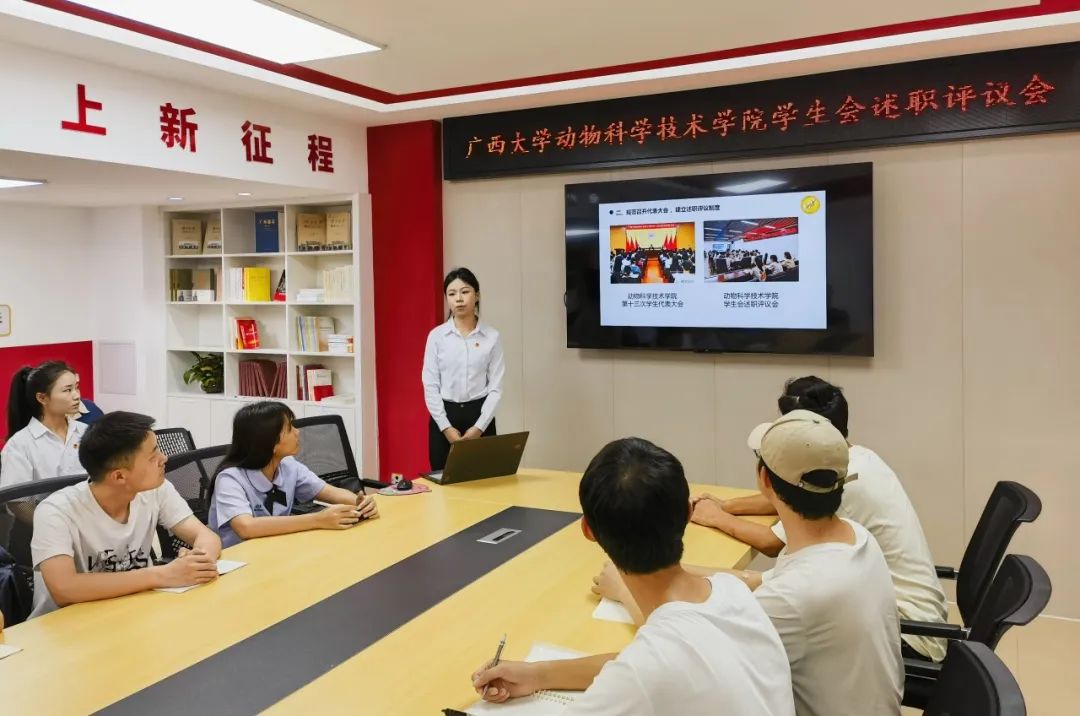 学生会主席团成员各自从思想政治、专业学习、工作成效、纪律作风和个人成长等方面依次进行述职。