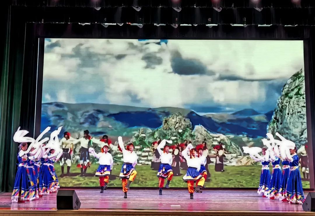 由各学院藏族学生表演的舞蹈《雪域儿女》,合着欢快明朗的音乐,男生潇洒豪迈的舞步,同女生温柔舒展的舞姿相互配合,为欢送晚会增添了一抹靓丽的少数民族风情。