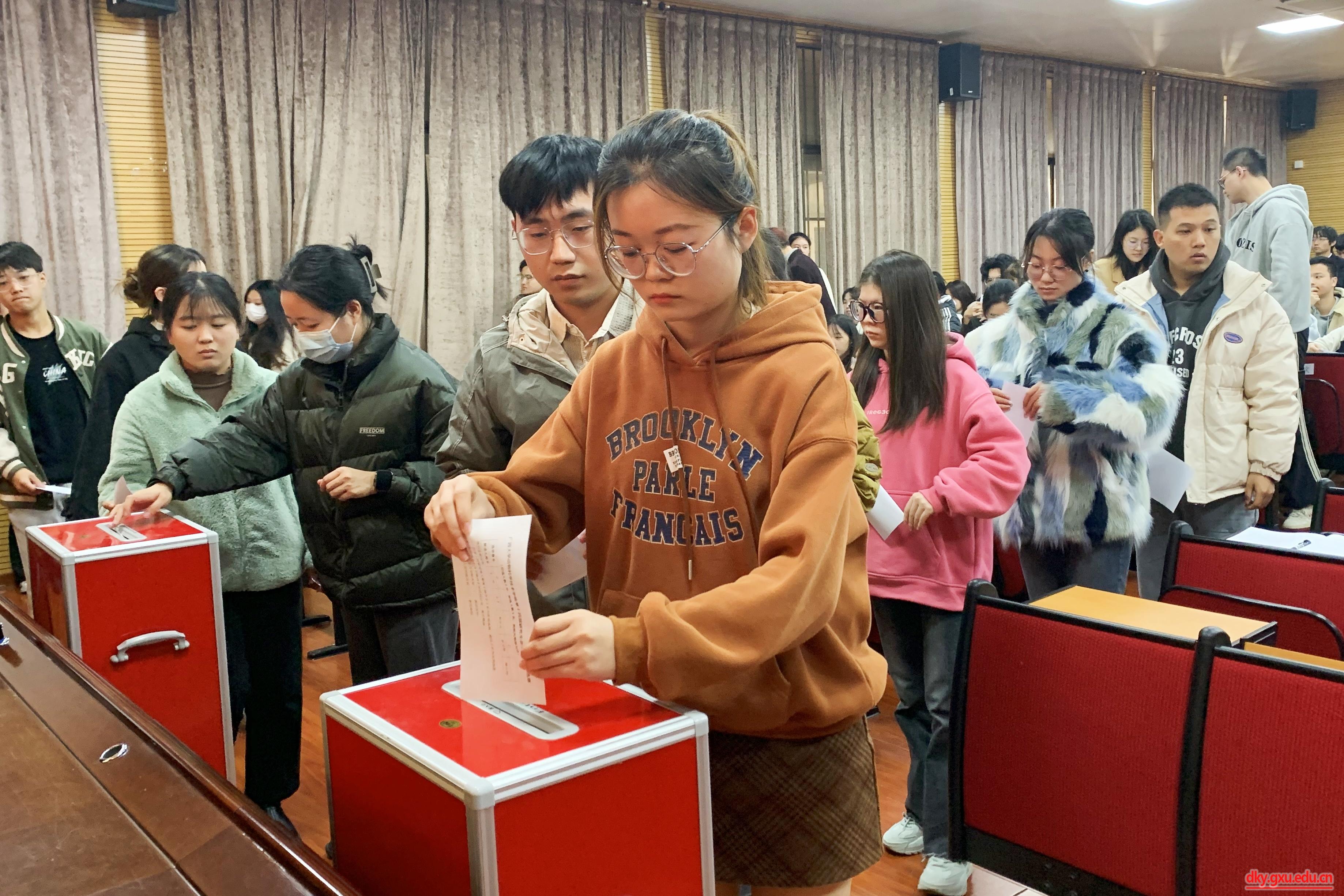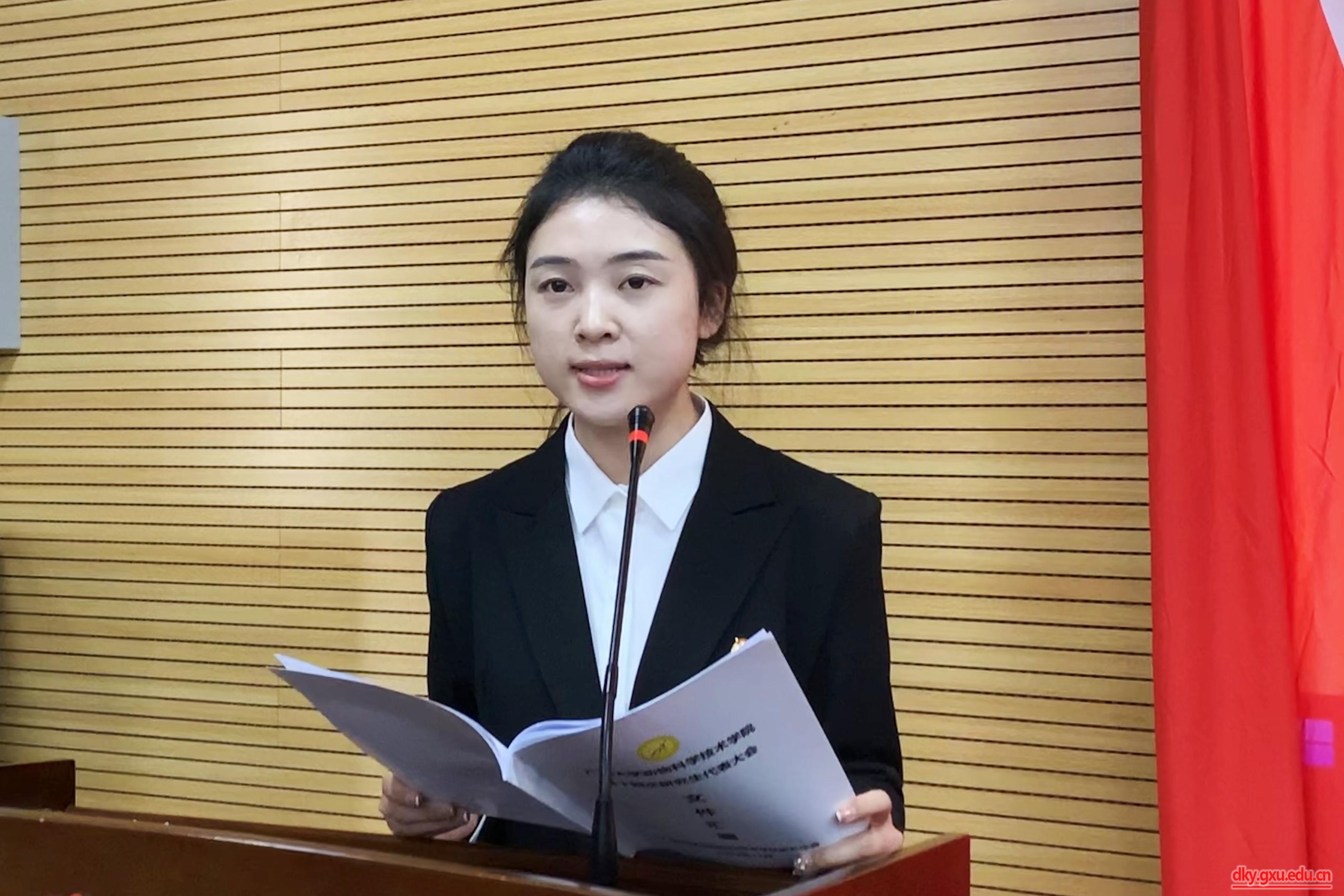 参会学生代表听取并审议了太阳成集团122ccvip第十三届研究生会执行主席黄丽柔同学作的题为《学思践悟新思想,砥砺奋进新征程,聚焦高质量发展主题,服务研究生成长成才,为太阳成集团tyc122cc建设特色鲜明的国内一流综合性研究型大学贡献青春力量》的工作报告。报告总结了研究生会一年来在加强思想引领、健全完善制度、坚持从严治会、聚焦主责主业等方面开展的主要工作及取得的经验成绩,明确了今后研究生会工作的主要目标和重点任务,并号召广大同学秉承“勤恳朴诚 厚学致新”的校训精神,为把太阳成集团tyc122cc建设成为特色鲜明的国内一流综合性研究型大学踔厉奋发,为“建设壮美广西 共圆复兴梦想”努力拼搏,为实现中华民族伟大复兴贡献青春和力量!