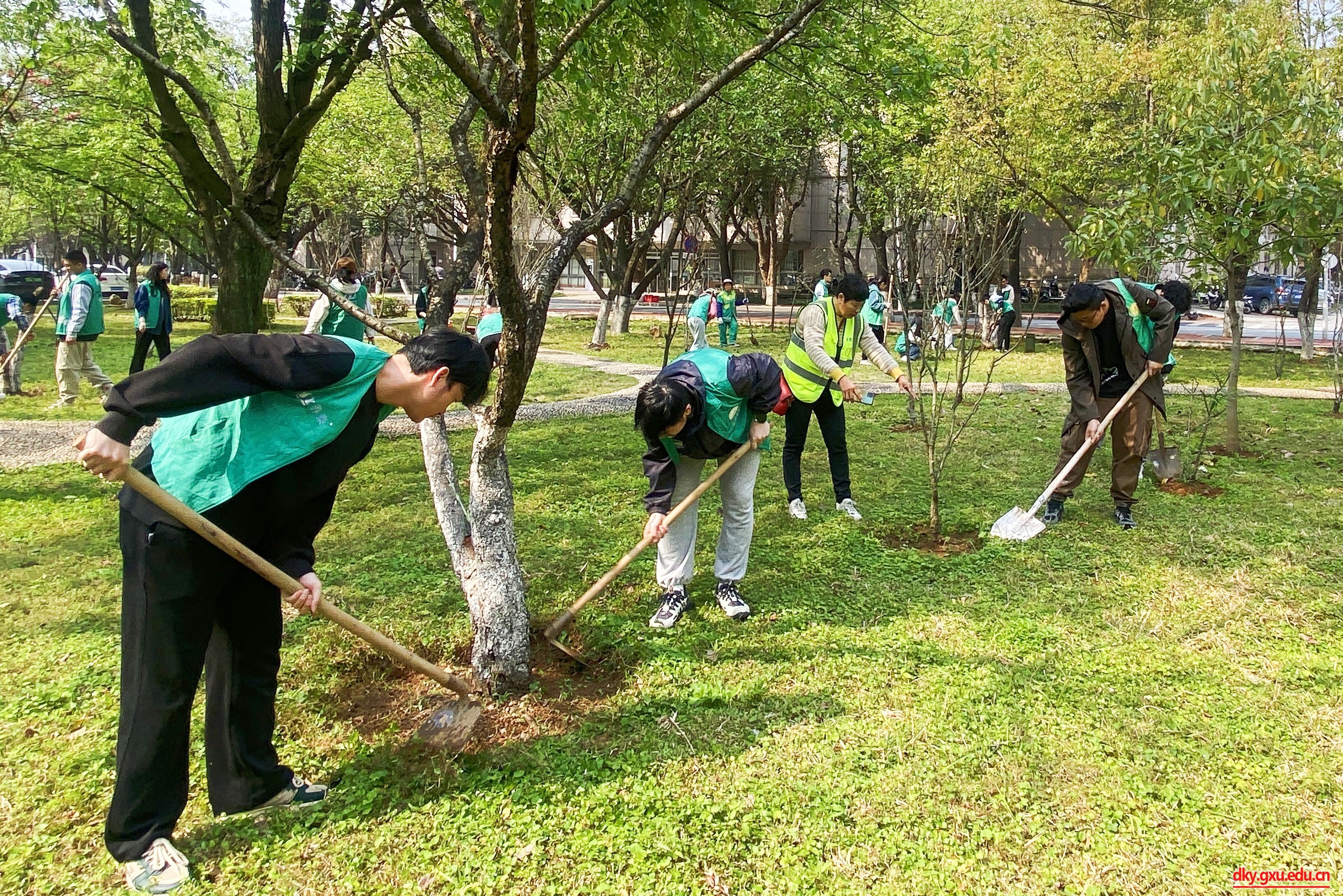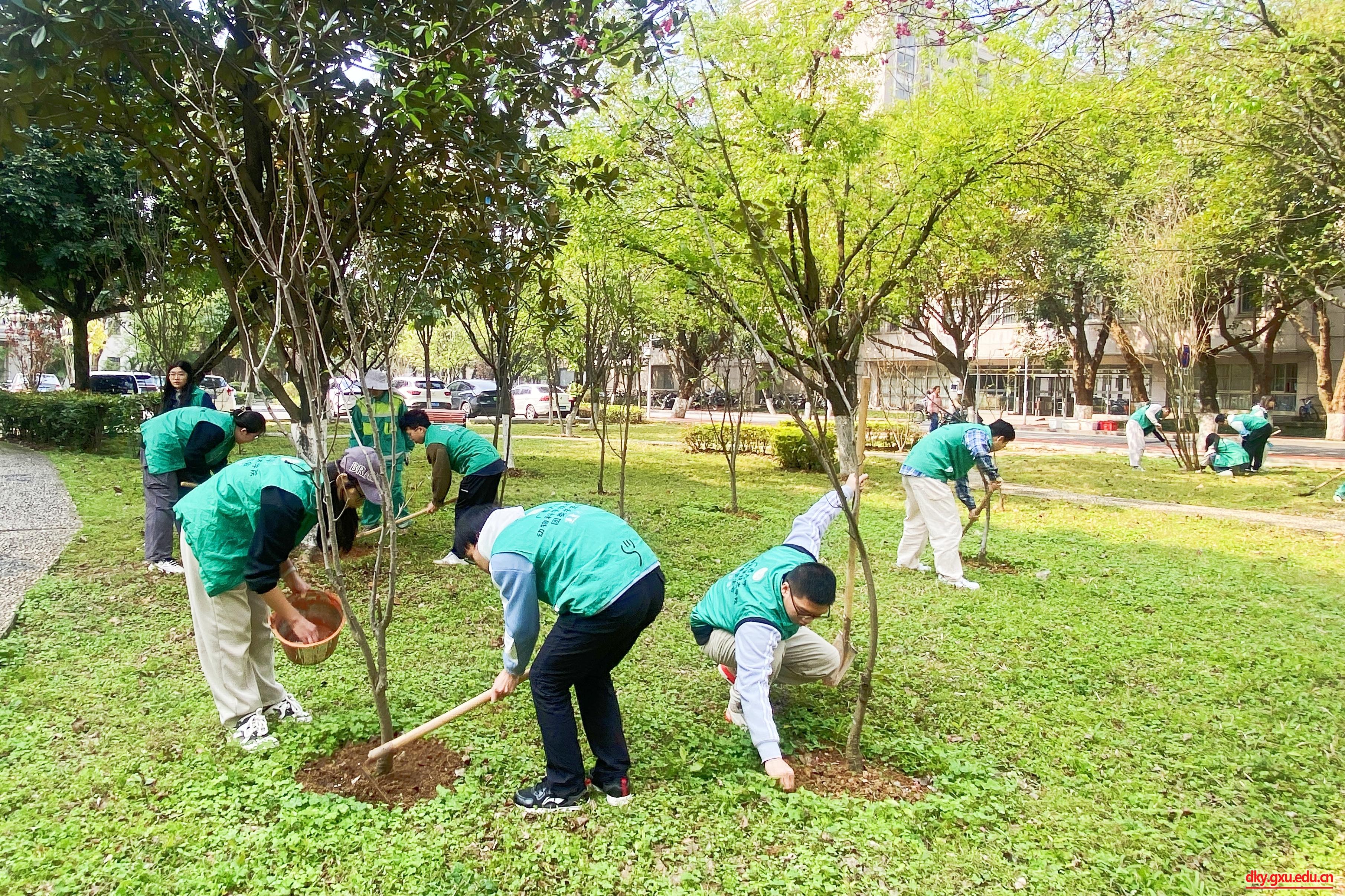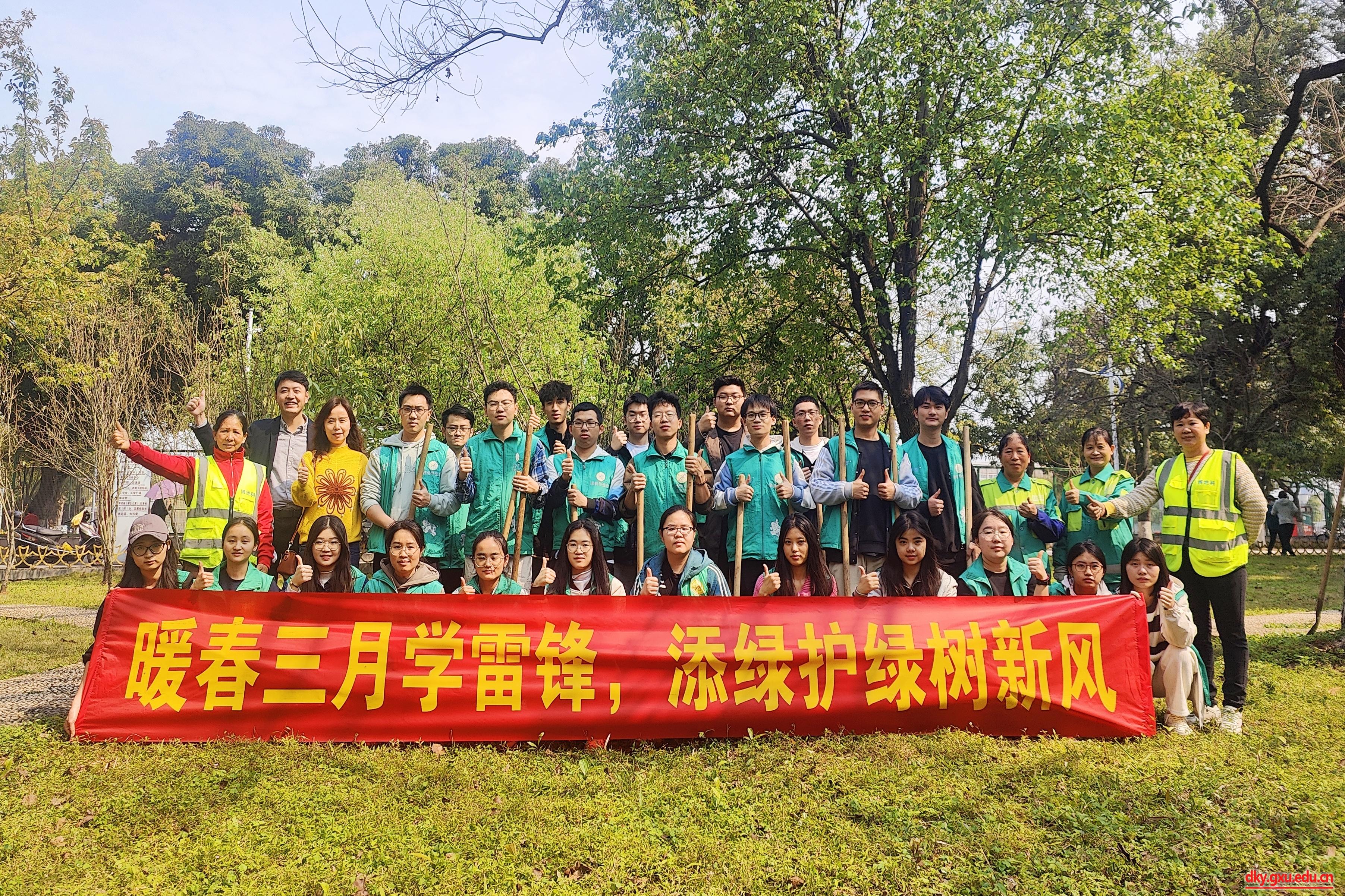 春风吐绿,草长莺飞,在第46个植树节来临之际,3月12日下午,太阳成集团122ccvip20余名志愿者来到西校园公共绿地开展“暖春三月学雷锋,添绿护绿树新风”养护树木志愿服务活动。