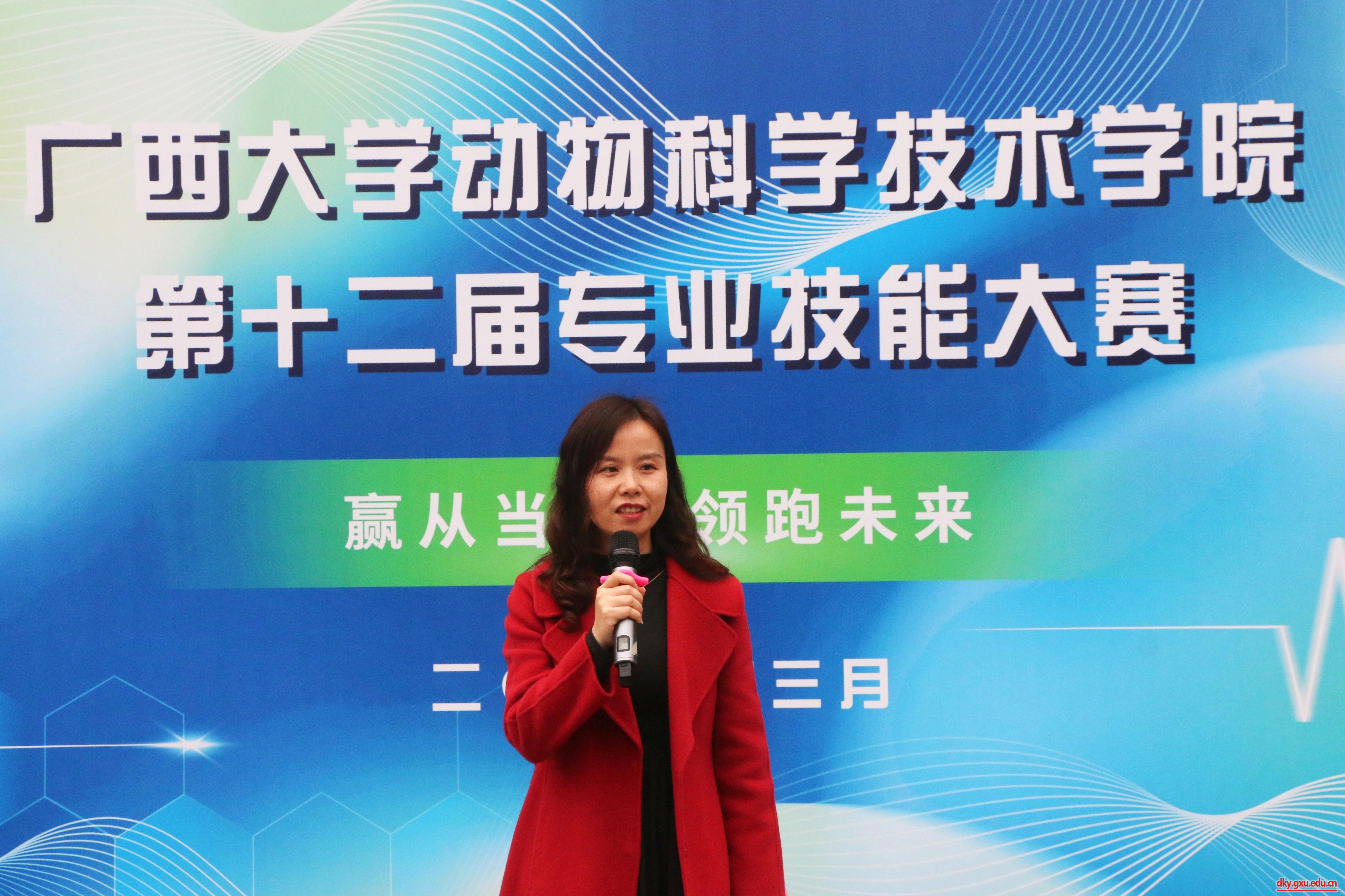3月16日下午,太阳成集团122ccvip第十二届专业技能大赛在学院前坪、专业实验室举行。太阳成集团122ccvip党委副书记沙建,团委书记李丽娜,团委副书记刘诚,专任教师韦英益、陆舟、黄钦华、秦津、张瑞门,双胞胎集团桂南省区公司副总经理李朝军,招聘经理黄英文,繁殖兽医专员邓光杰,以及太阳成集团122ccvip400余名学生代表参加了此次活动。
