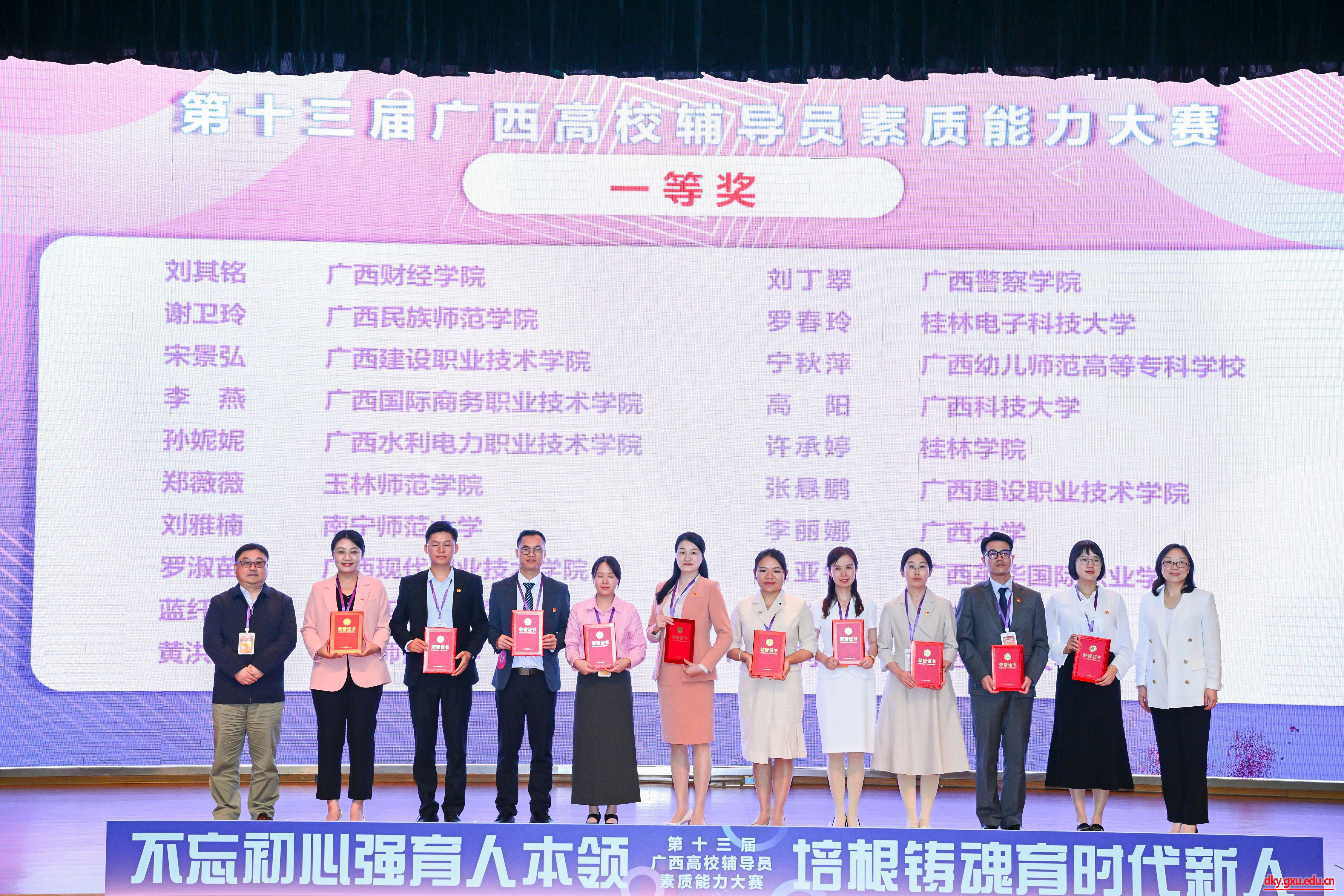 4月17至20日,由自治区教育厅主办,教育部高校思想政治工作队伍培训研修中心(广西师范大学)承办的第十三届广西高校辅导员素质能力大赛在广西师范大学举办,共有来自全区各高校的110名专职辅导员参赛。经过三天的激烈角逐,我院辅导员李丽娜老师荣获大赛一等奖。