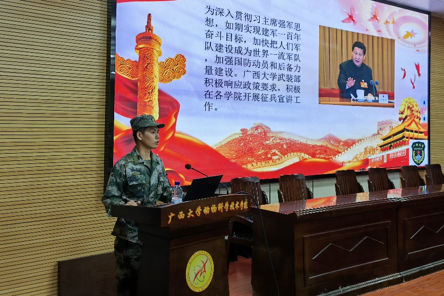 宣讲会上,退伍大学生代表结合实际案例,说明了当代有志青年参军报国的重要意义和个人收获。