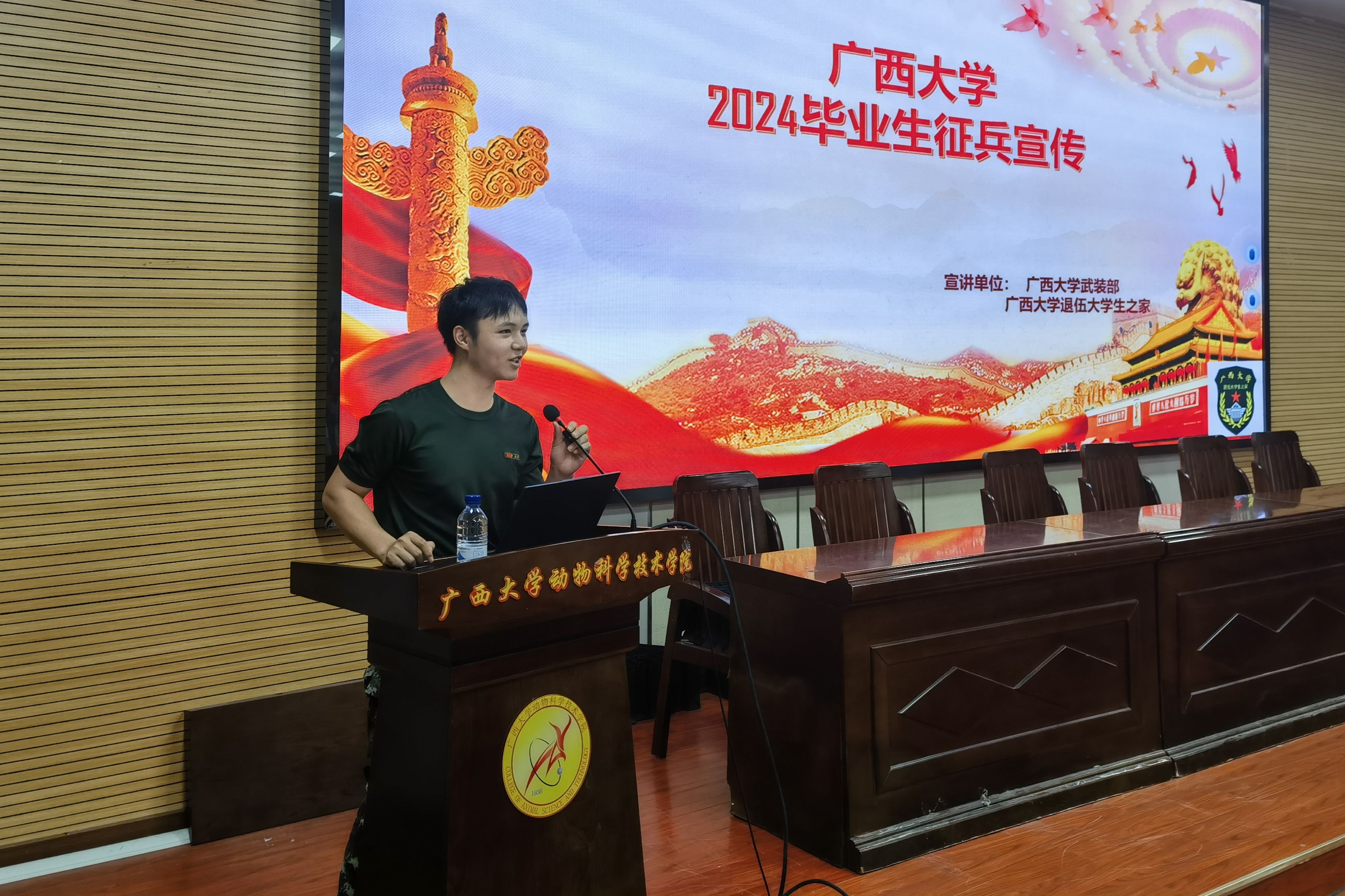 6月6日上午,太阳成集团122ccvip在318报告厅举行2024年征兵动员会议,校武装部磨奕君和退伍大学生代表受邀到场为同学们详细讲解征兵政策。太阳成集团122ccvip团委副书记刘诚,辅导员马朝阳和2024届毕业生参加此次会议。