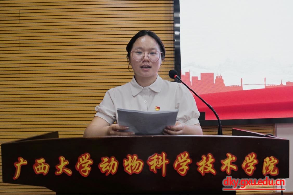 升排学生代表陈丽娟在发言中表示,将时刻以党员的标准严格要求自己,发挥模范带头作用,以更加饱满的热情、更加坚定的信念、更加务实的作风,投身到新时代中国特色社会主义的伟大实践中,用实际行动践行“请党放心,强国有我”的青春誓言。