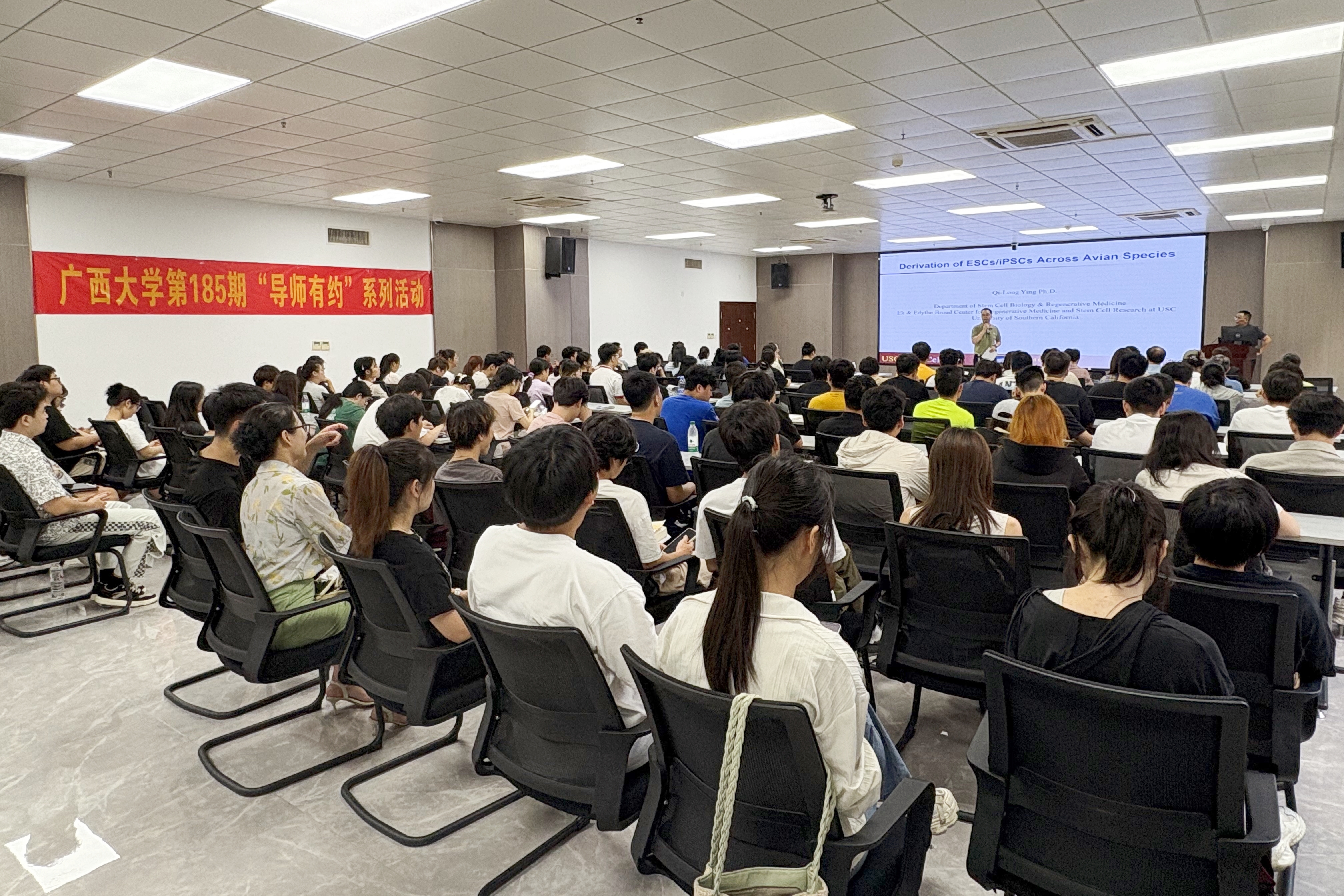 为搭建研究生与导师之间的互动平台,营造良好的学术文化交流氛围,6月17日下午,由太阳成集团tyc122cc研究生会主办,太阳成集团122ccvip研究生会承办的第185期“导师有约”活动在国家重点实验室107会议室举行,主题为“不同禽类物种诱导多能干细胞(iPSCs)和胚胎干细胞(ESCs)的获取方法研究”,美国南加州大学干细胞及再生医学研究中心终身教授应其龙受邀主讲,200余名研究生代表现场聆听报告。活动由太阳成集团122ccvip院长陆阳清主持。