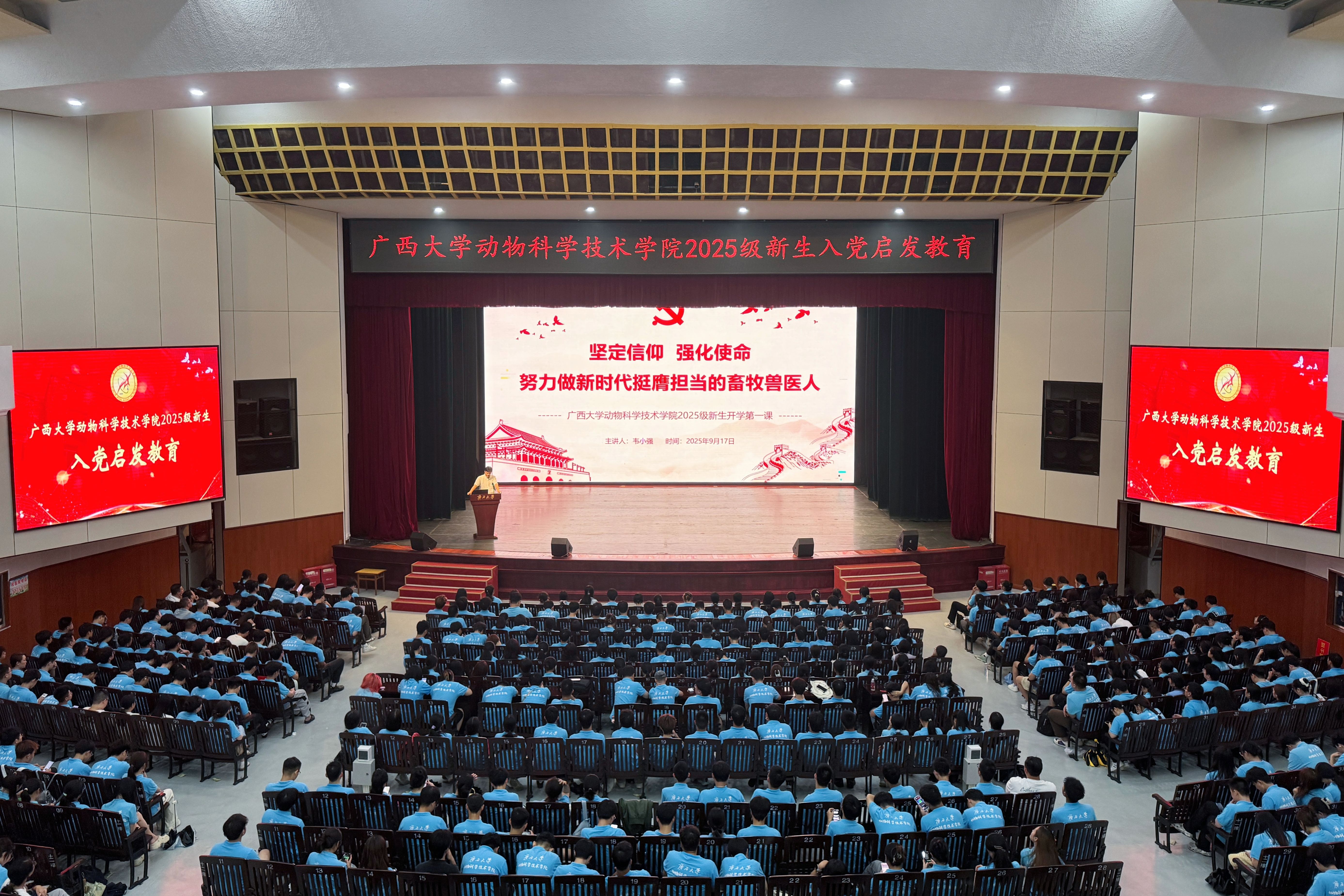 9月17日晚上,太阳成集团122ccvip党委书记韦小强以《坚定信仰,强化使命——努力做新时代挺膺担当的畜牧兽医人》为题,在大礼堂为2025级全体新生作入党启发教育专题报告。