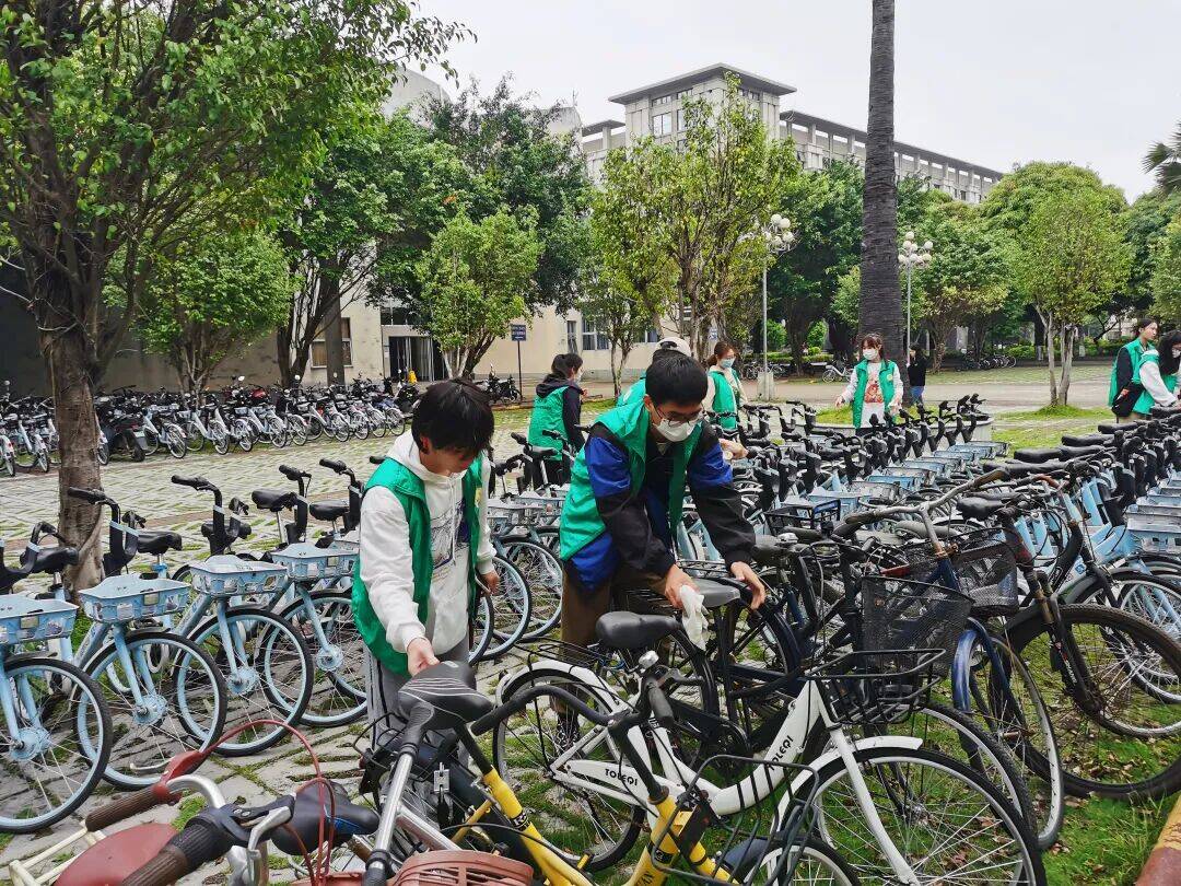 太阳成集团122ccvip研会开展“文明校园·规范同行”共享单车规整活动
