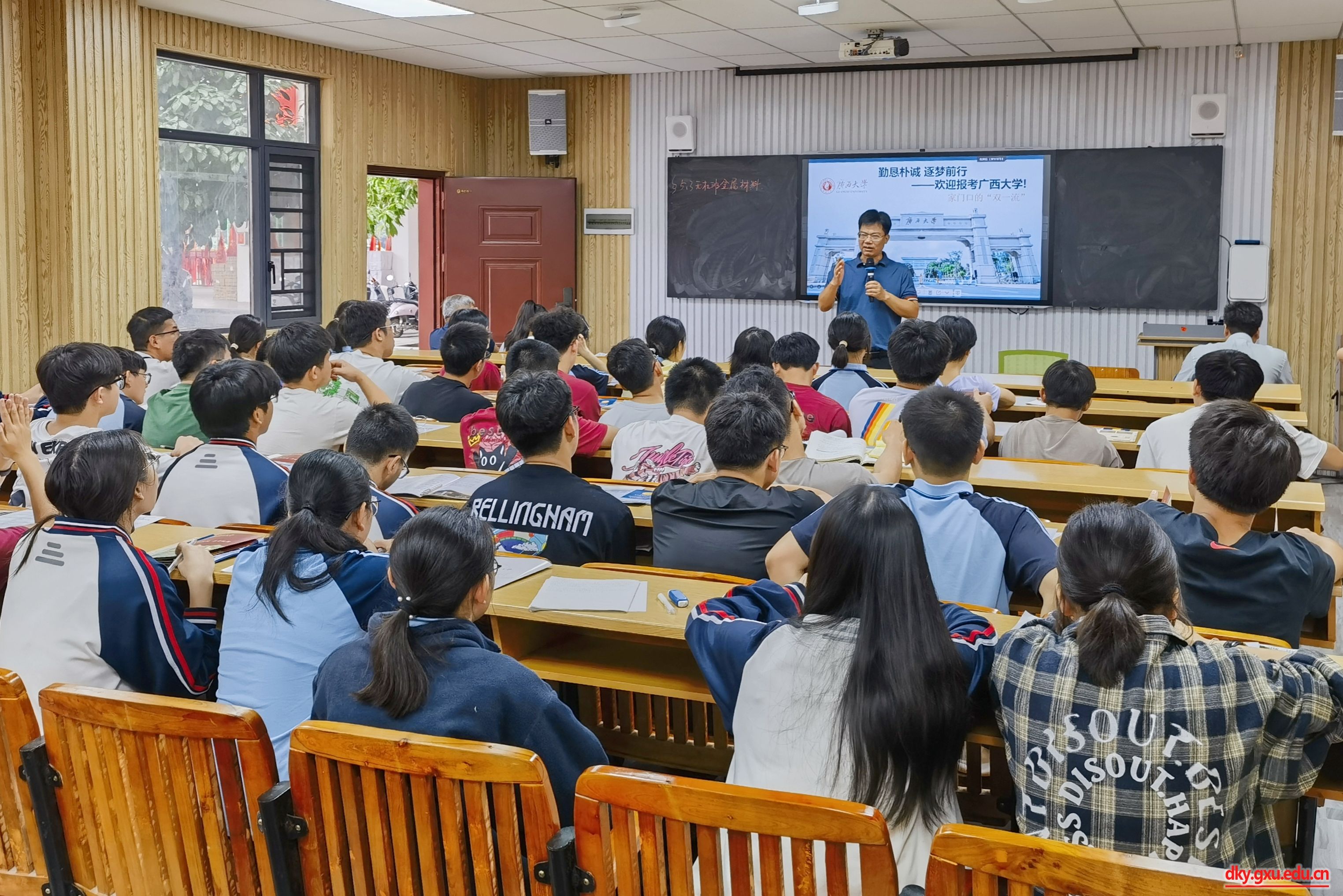 在都安县高级中学,方芳老师以《寄生虫疗法》为题,结合自身科研经历,向同学们展示生物技术的前沿知识和广阔应用,极大激发了大家的学习热情。韦英益老师回顾了自己的求学经历,鼓励同学们努力拼搏,勇敢追梦,实现自己的人生理想。