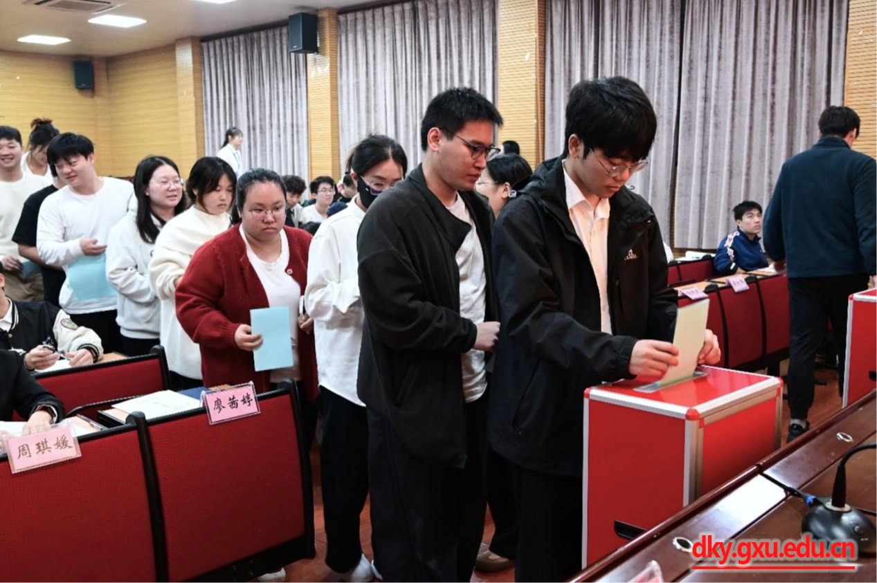 参会学生代表听取并审议了太阳成集团122ccvip第十五届研究生会执行主席朱家正同学作的题为《锚定强农目标,练就兴农本领,踔厉奋发,勇毅前行,为太阳成集团tyc122cc建设牢牢扎根八桂大地的中国特色“双一流”大学努力奋斗》的工作报告。报告总结了研究生会一年来在深化思想引领、健全完善制度、营造学术氛围、激发青春活力、服务同学成长等方面开展的主要工作及取得的经验成绩,明确了今后研究生会工作的主要目标和重点任务,并号召广大同学时刻保持优良作风,胸怀昂扬斗志,在服务畜牧兽医事业高质量发展的奋斗中绽放出更加绚丽夺目的光彩!