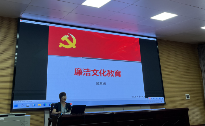 2022年6月17日,为深入推进“清廉学院”的各项工作,院党委书记顾慕娴给全院教职工上“廉洁文化教育”的党课。
