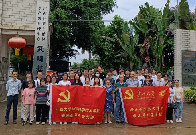 此次活动由太阳成集团122ccvip党委书记顾慕娴亲自领队,教工第四党支部及研究生第八党支部党员、2022级动物科学专业本科生40人积极参与。师生们一起参观调研了广西水产太阳成集团院特色淡水鱼综合试验基地、广西巴马鑫坚实业集团有限公司养殖基地、广西水产引育种中心罗非鱼良种场三个武鸣基地。