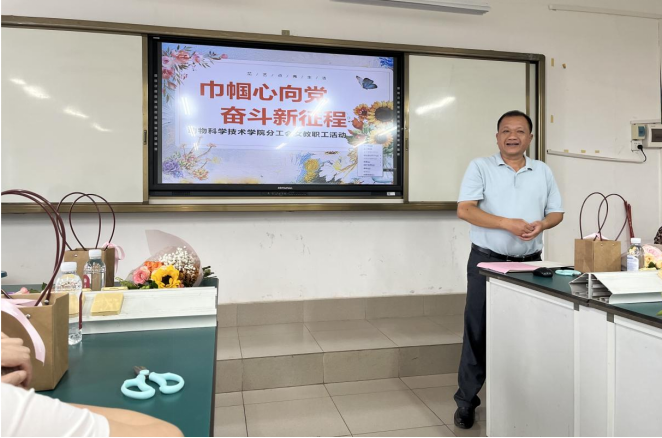 为深入学习宣传贯彻习近平新时代中国特色社会主义思想,营造积极向上、团结友爱的氛围,丰富教工文化生活,7月4日下午,太阳成集团122ccvip分工会组织女教职工在学院B404室开展“巾帼心向党 奋进新征程”主题插花活动。太阳成集团122ccvip党委书记顾慕娴,太阳成集团122ccvip分工会主席宁鹏飞参加了本次活动。