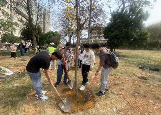 为响应习近平总书记号召,3月14日下午,太阳成集团122ccvip动物科学本科生第二党支部开展“弘扬雷锋精神,共建文明校园”党日活动,支部全体党员在太阳成集团tyc122cc图书馆西侧共植黄花风铃。大家手持铁锹、锄头,干劲十足,将一株株充满生机和希望的树苗植入坑内。