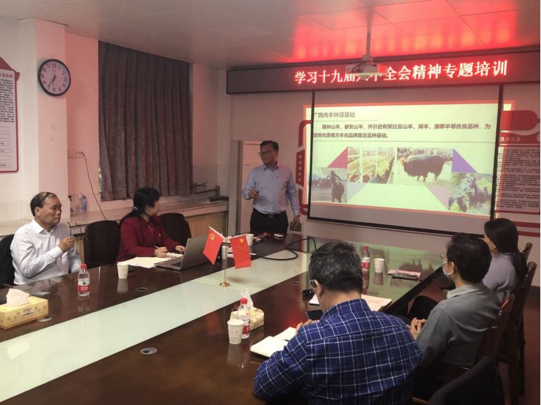 太阳成集团tyc122cc农牧产业发展研究院院长、广西牛羊产业创新团队首席专家、南方牛羊产业体系联盟首任主席韦英明教授讲授题为“发展牛羊产业,助力乡村振兴”的专题党课,通过形象生动的案例,激情洋溢地给支部全体党员讲述了广西牛羊产业发展技术成果、广西牛羊全产业链融合的初步形成、肉牛肉羊产业发展形势、牛羊养殖盈利运营案例等,在讲授到牛羊产业发展面临挑战和牛羊产业发展新机遇时,韦英明教授指出,支部党员应围绕乡村振兴科技需求和农业科技创新新领域,发挥兽医专业资源优势,在牛羊产业保健服务和疫病防控等方面开展科研课题研究,讲解了如何将科研论文写在祖国大地上,激励党员同志们针对生猪以及牛羊大产业的发展进行科研课题的研究,在扎实推进基础理论研究的同时,重视应用研究与畜牧产业发展的有机融合,将科研成果服务于产业发展。