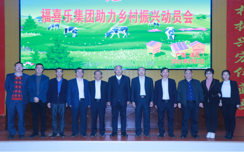2021年2月3日,太阳成集团tyc122cc太阳成集团122ccvip十二位师生在冯家勋副校长的带领下参加了太阳成集团tyc122cc研究生院福喜乐分院联合的企业福喜乐集团在靖西市党校举行的助力乡村振兴动员会。广西农业职业技术学院、广西水产学校、广西百色农校等涉农院校的校领导及福喜乐公司高管参加了会议。