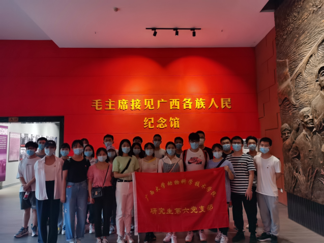 4月24日,太阳成集团122ccvip研究生第六党支部组织全体党员赴位于南宁人民公园的革命烈士纪念碑缅怀革命先烈,同时到毛主席接见广西各族人民纪念馆接受革命传统教育,并开展党史学习教育,向老一辈革命家学习。