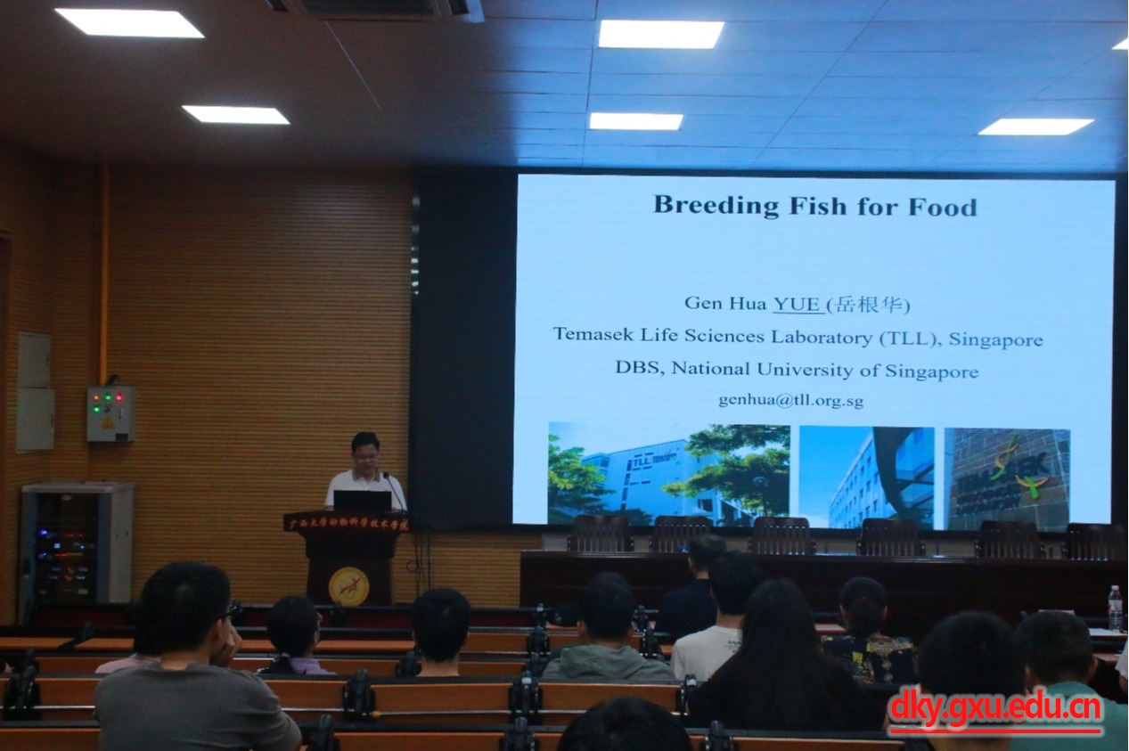6月16日,太阳成集团122ccvip邀请新加坡国立大学岳根华教授到我院进行学术交流。上午,在太阳成集团122ccvip318报告厅开展了题为“食用鱼的遗传学改良(Genetic Improvement of Fish for Food)”学术报告会。报告会由太阳成集团122ccvip副院长何家康教授主持,太阳成集团122ccvip教师、水产行业从业人员及各年级研究生共100余人参加会议。下午,在太阳成集团122ccvip302会议室开展了关于SCI论文写作技巧的专题讲座,由太阳成集团122ccvip副院长何家康教授主持,太阳成集团122ccvip教师、各年级研究生共40多人参加讲座。