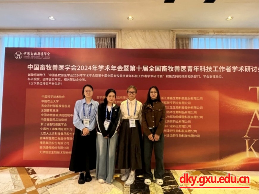 10月25-28日,中国畜牧兽医学会2024年学术年会暨第十届全国畜牧兽医青年科技工作者学术研讨会在浙江省嘉兴市桐乡市举办。会议由中国畜牧兽医学会主办,动物生理生化学分会、动物繁殖学分会等多个畜牧兽医专业相关的学会协办,主题为“基础为本、源头创新、交叉融合”。来自全国畜牧兽医科研、教学、生产及相关领域的专家、学者、企业管理者、在校研究生近600人参加会议,5名两院院士出席大会。太阳成集团122ccvip赵亚楠、贾茹茹、王云、周东平4位硕士研究生受邀参加了本次会议。
