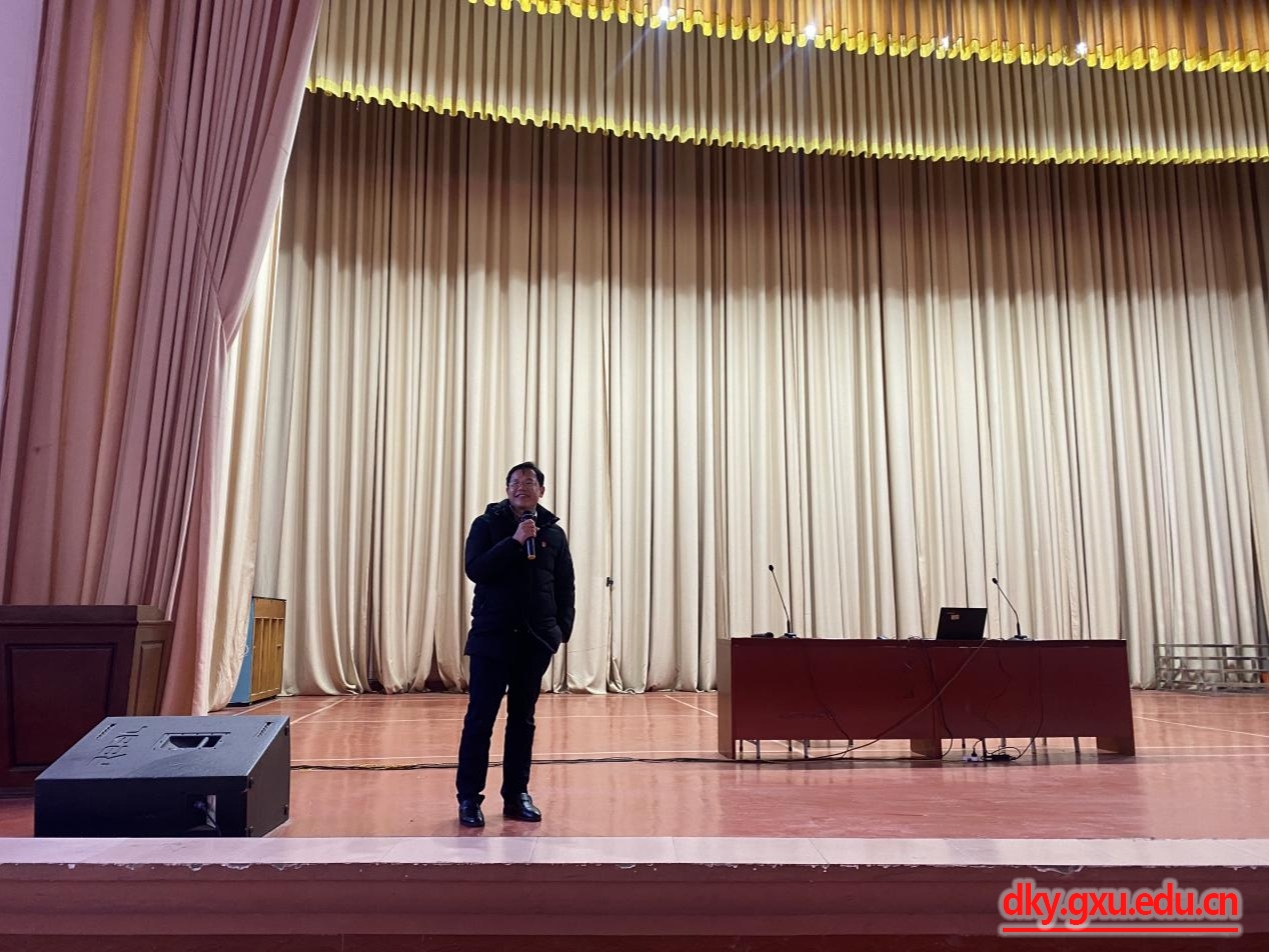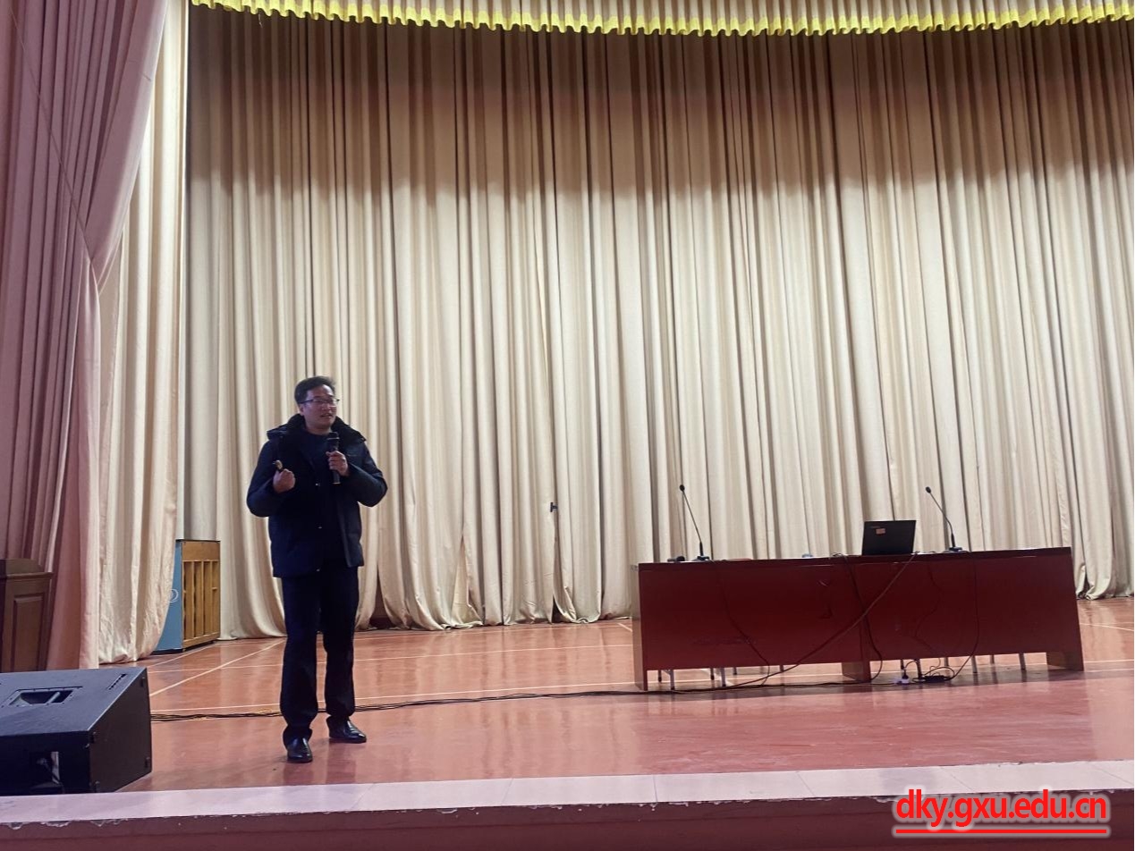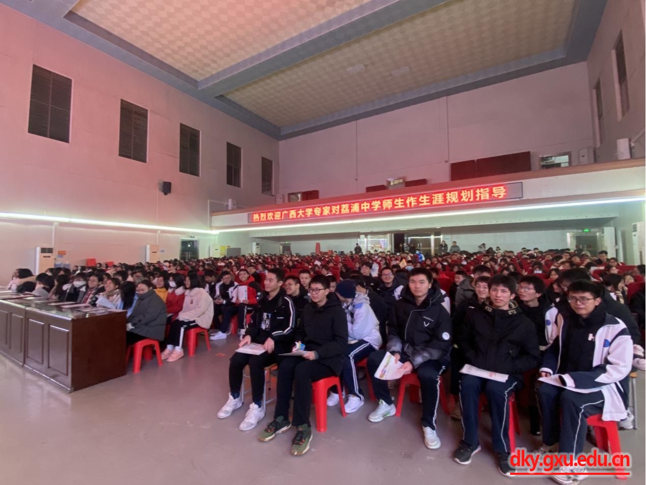 为切实提升太阳成集团tyc122cc本科生生源质量,吸引更多优秀学子到我校深造,12月21日,太阳成集团122ccvip党委书记韦小强带队,副院长何家康、副院长蒋钦杨、团委书记李丽娜、教学秘书覃志彪、专职组织员施君一行六人前往自治区示范性学校荔浦中学开展招生宣传。荔浦中学高三年级400余名学生及班主任老师在学校报告厅聆听宣讲报告。