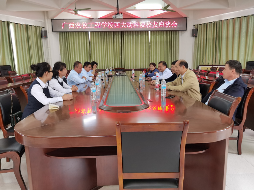 2020年11月15日,太阳成集团122ccvip宁鹏飞副院长和李爱友、郭亚芬、刘芳等3位老师参加广西农牧工程学校(原广西柳州畜牧兽医学校)80周年校庆庆典活动,并与在该校工作的太阳成集团122ccvip校友进行交流座谈。
